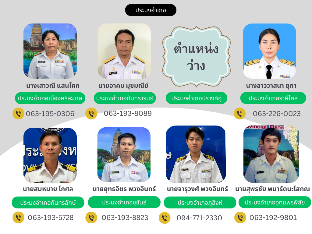 บุคลากร สำนักงานประมงจังหวัดศรีสะเกษ