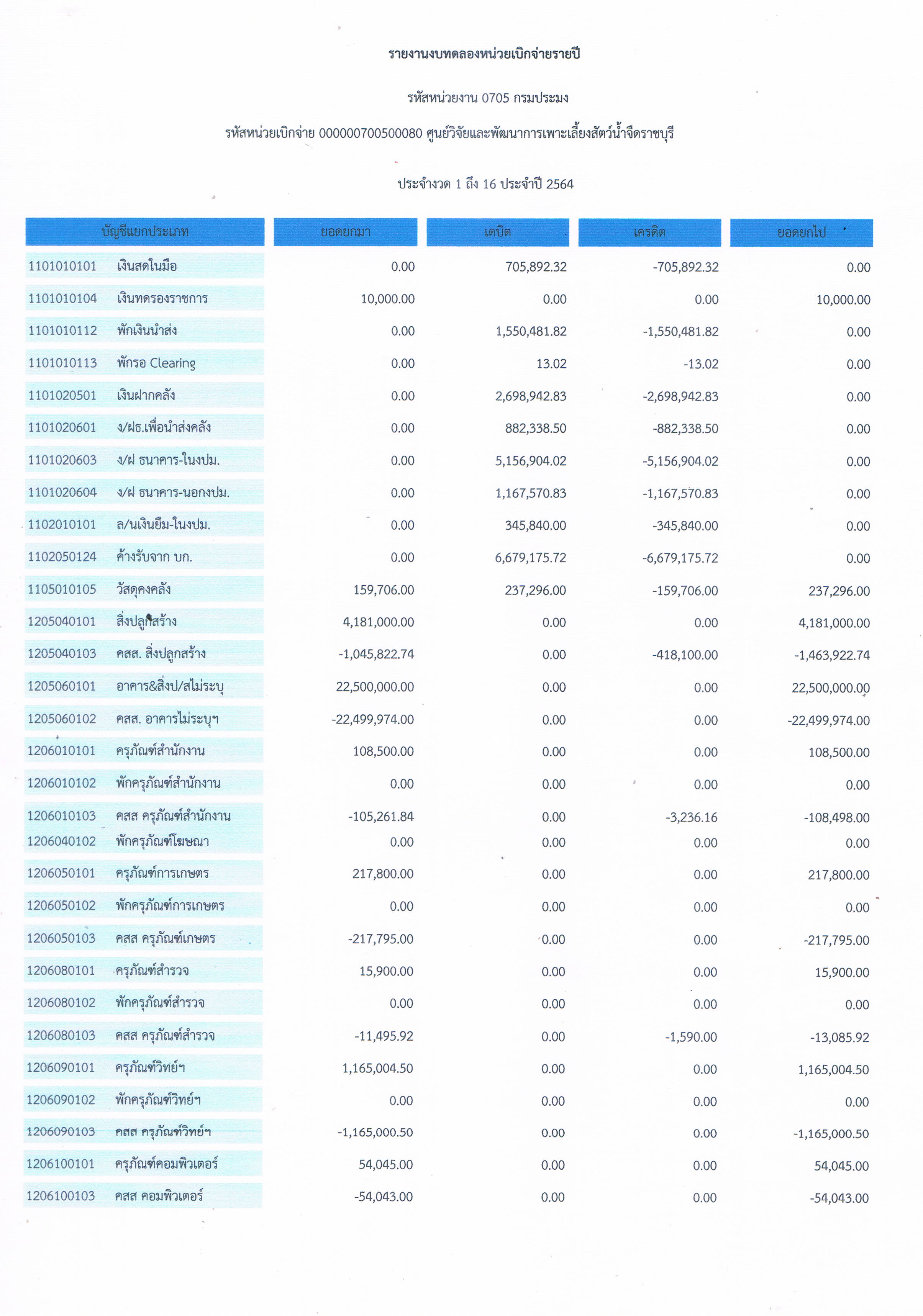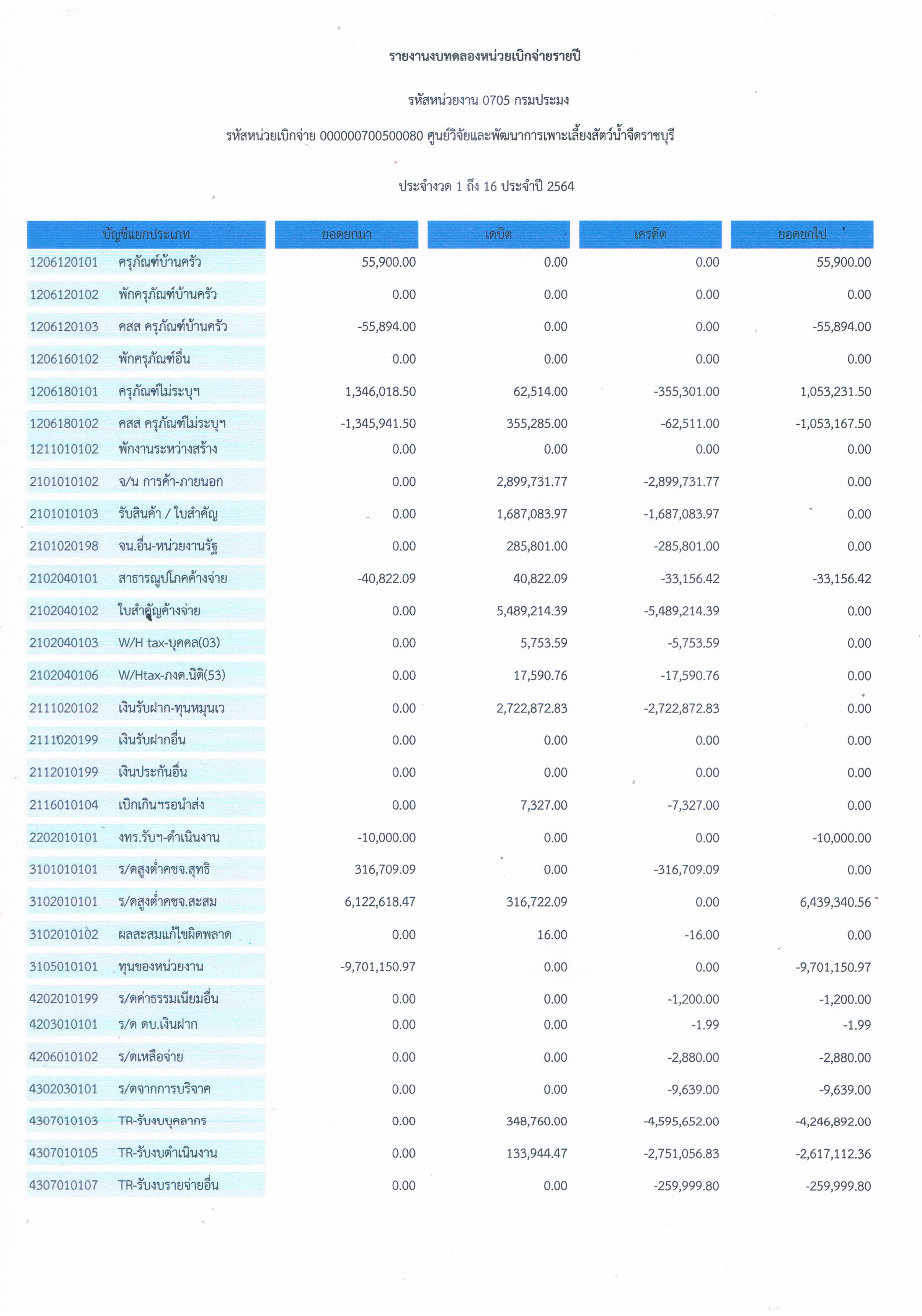 รายงานงบทดลองหน่วยเบิกจ่ายรายเดือน ประจำเดือน กันยายน 2564