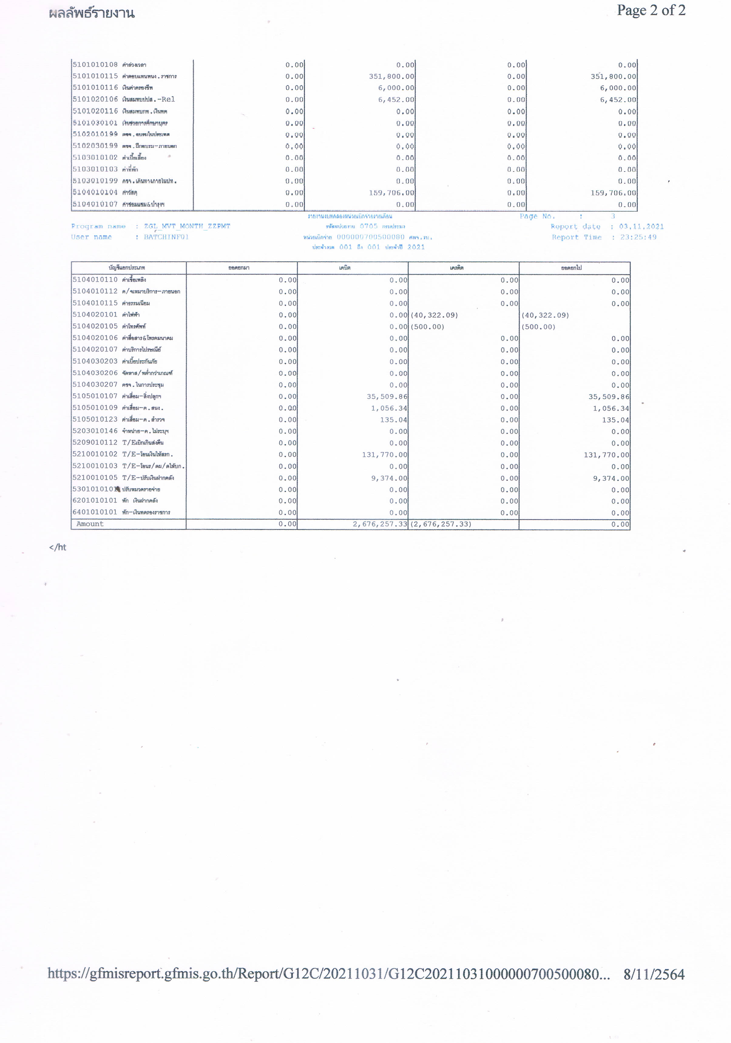 รายงานงบทดลองหน่วยเบิกจ่ายรายเดือน ประจำเดือน ตุลาคม 2564