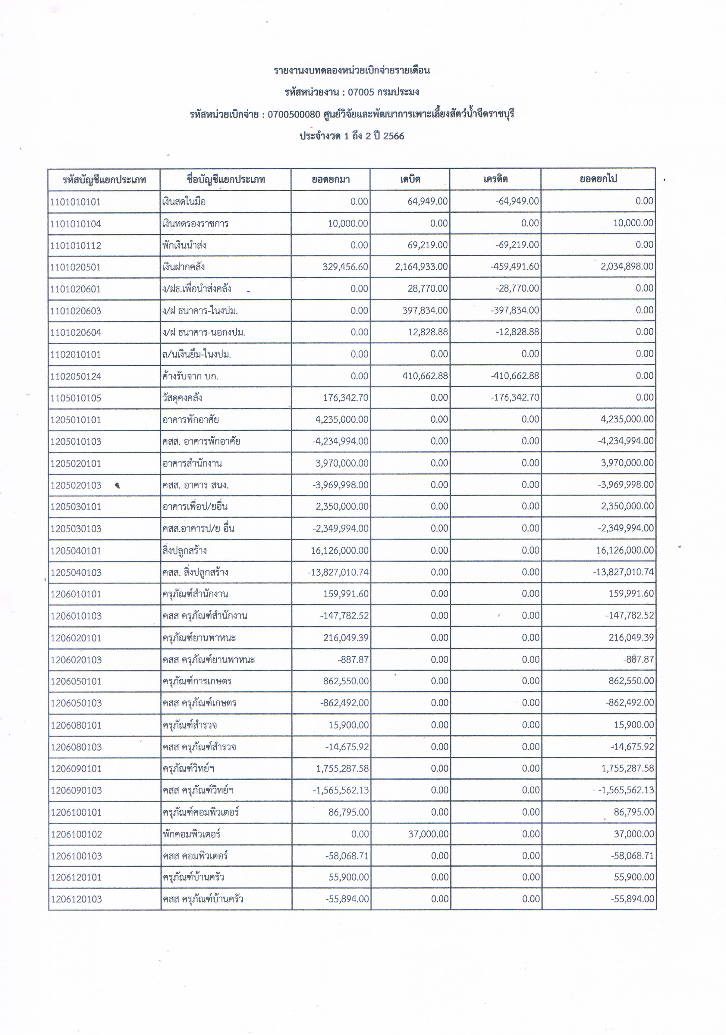 รายงานงบทดลองหน่วยเบิกจ่ายรายเดือน ตุลาคม 2565 ศูนย์วิจัยและพัฒนาการเพาะเลี้ยงสัตว์น้ำจืดราชบุรี..คลิก