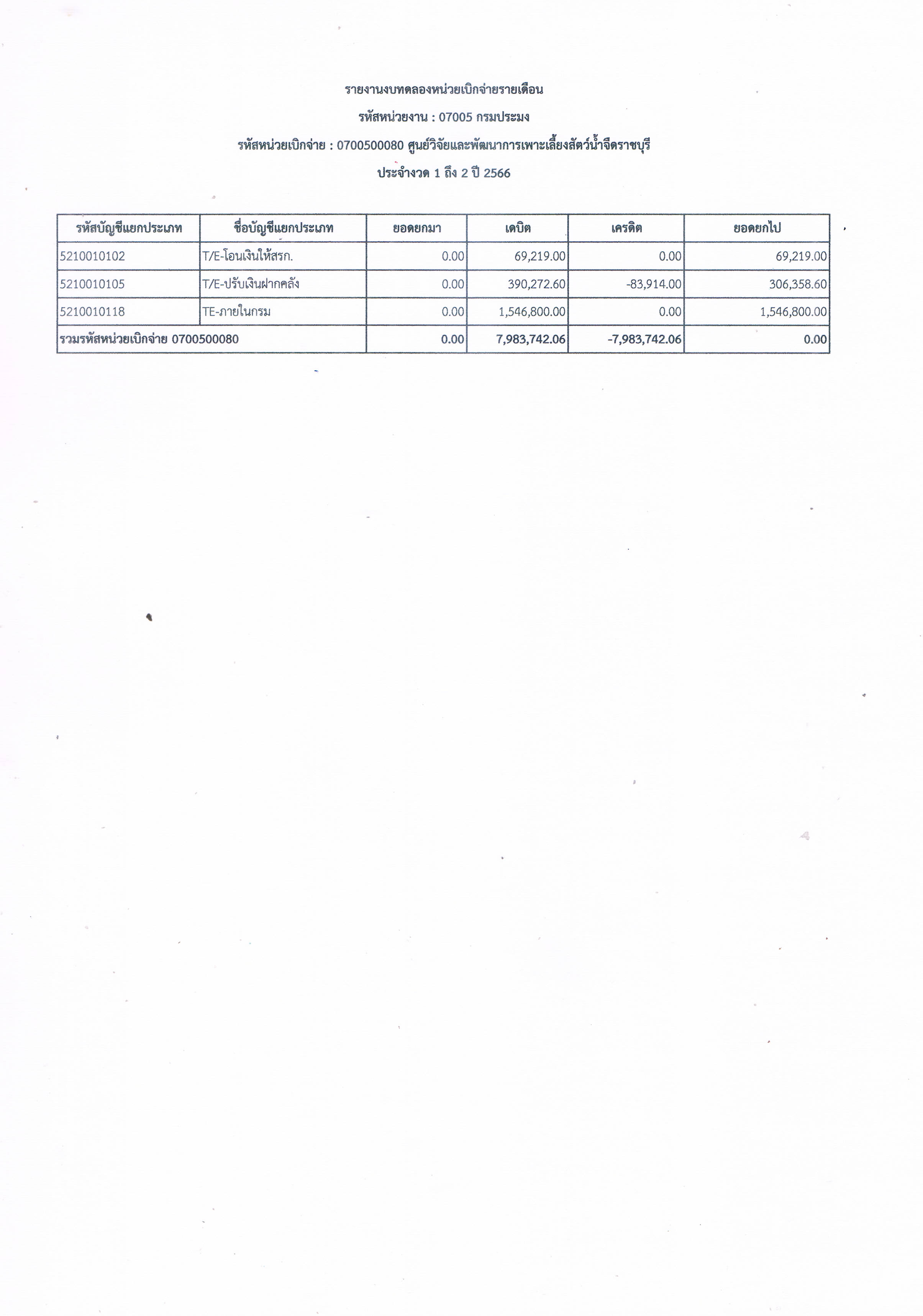 รายงานงบทดลองหน่วยเบิกจ่ายรายเดือน ตุลาคม 2565 ศูนย์วิจัยและพัฒนาการเพาะเลี้ยงสัตว์น้ำจืดราชบุรี