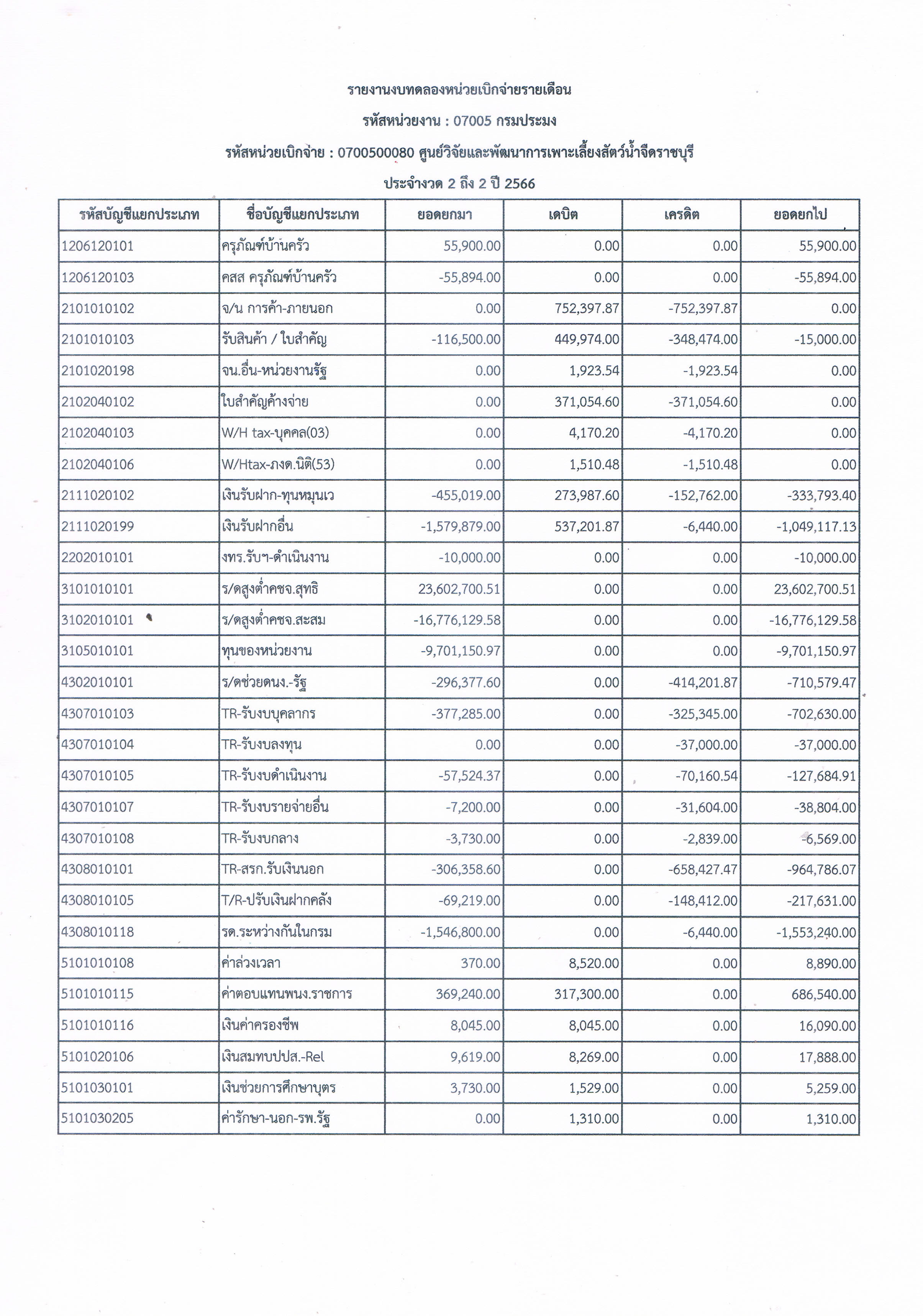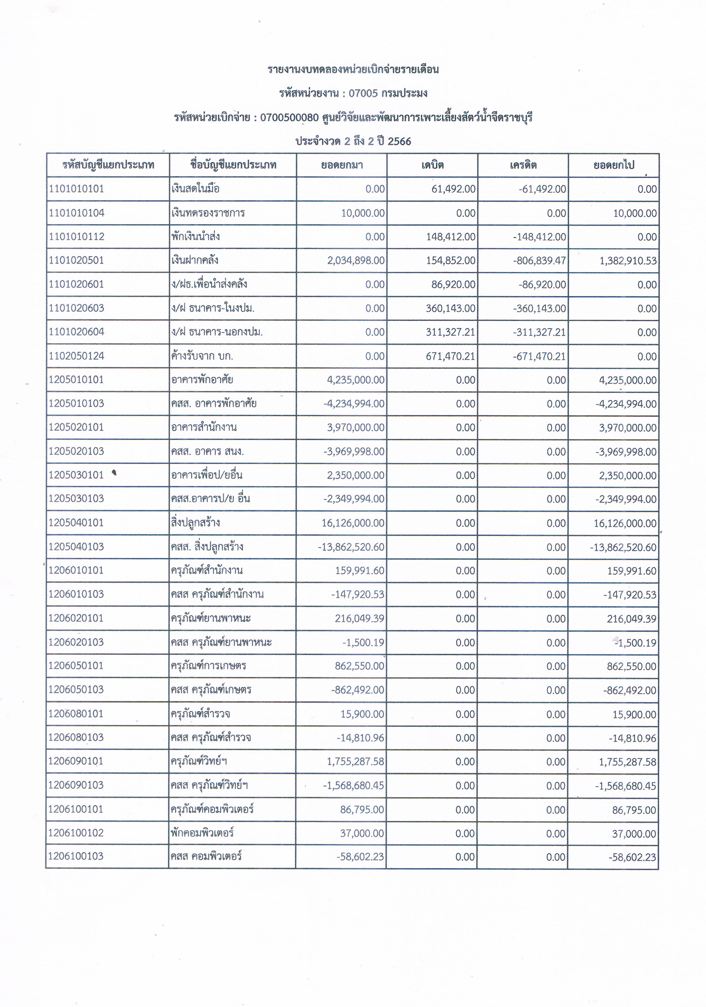 รายงานงบทดลองหน่วยเบิกจ่ายรายเดือน พฤศจิกายน 2565 ศูนย์วิจัยและพัฒนาการเพาะเลี้ยงสัตว์น้ำจืดราชบุรี..คลิก