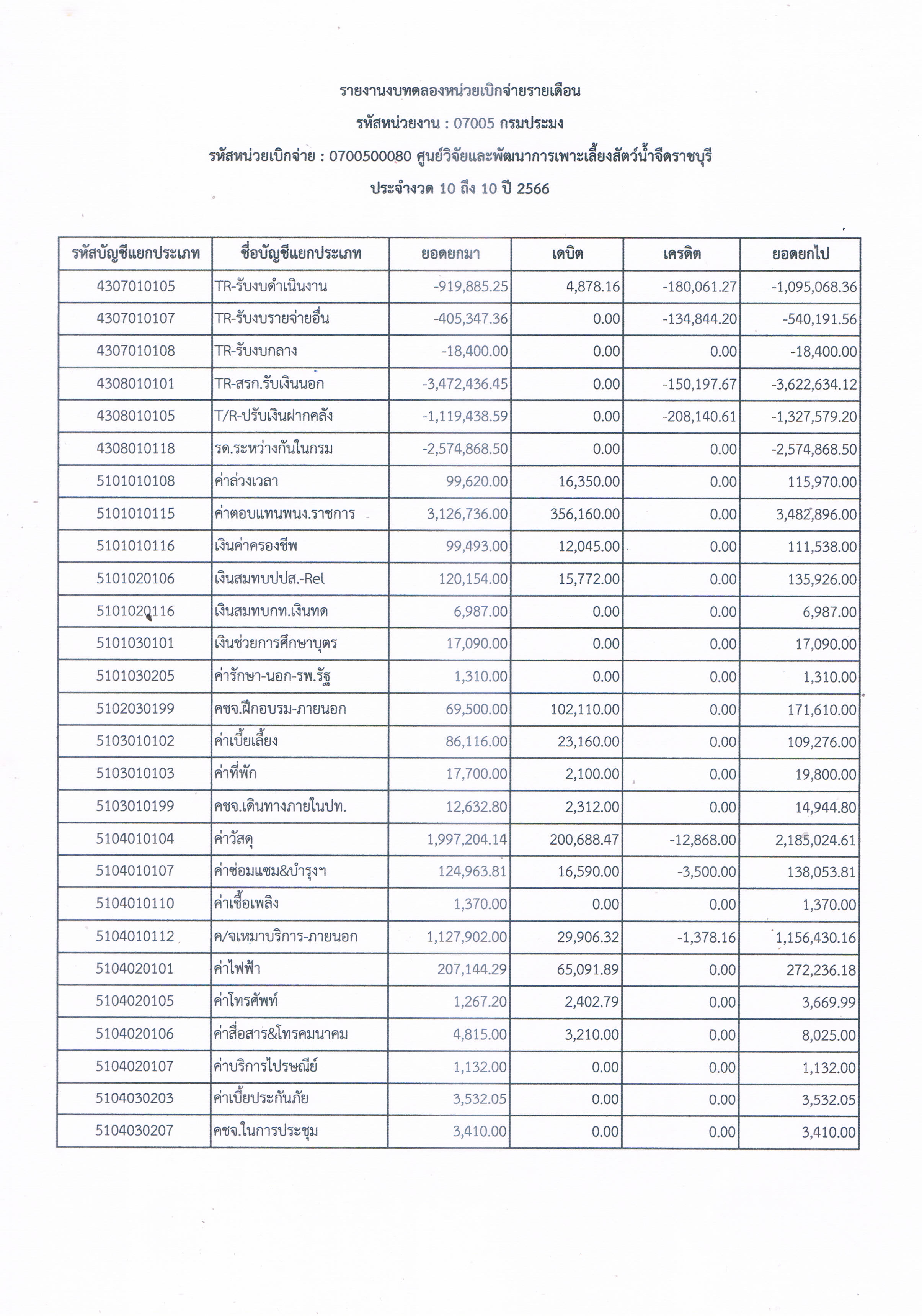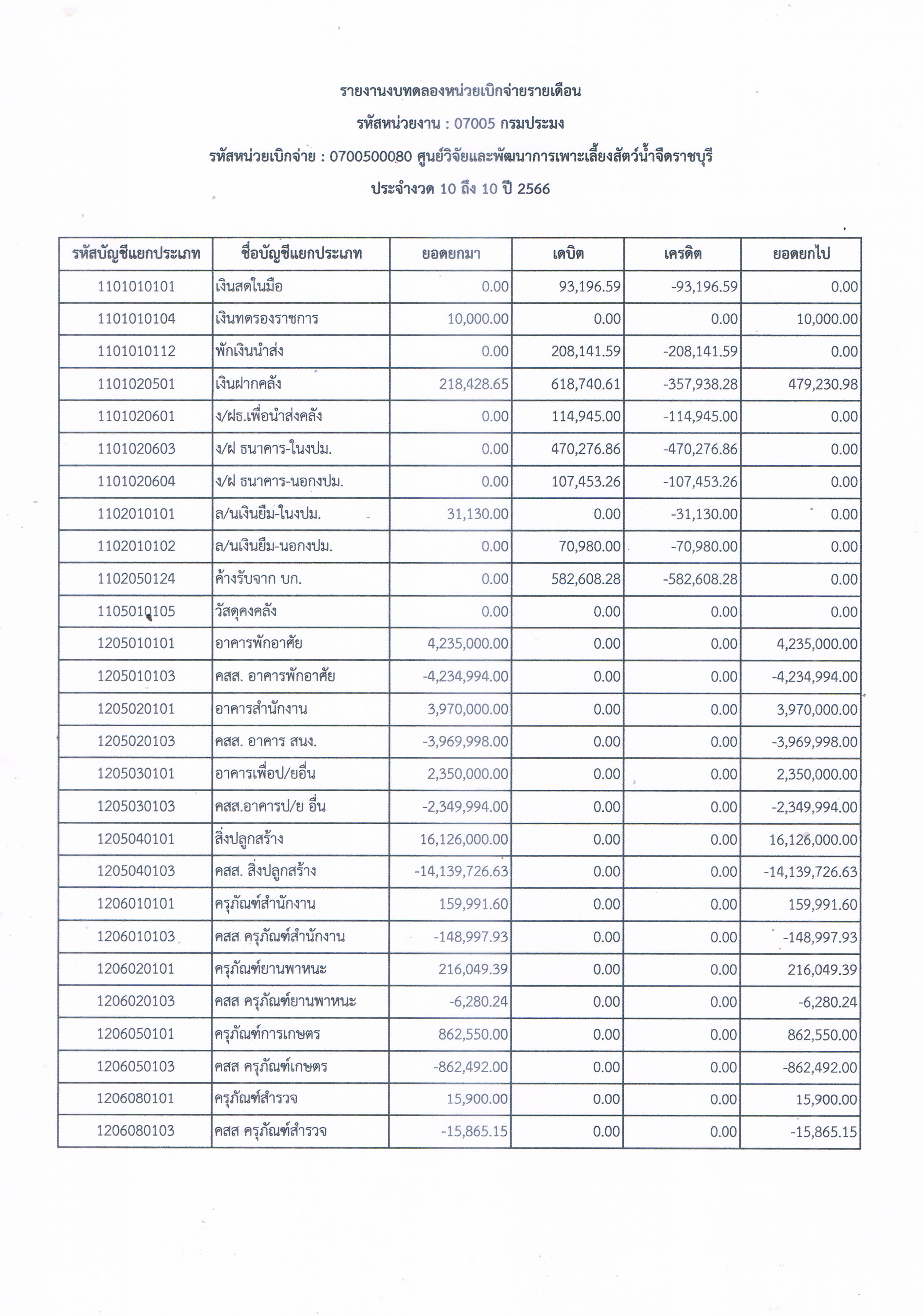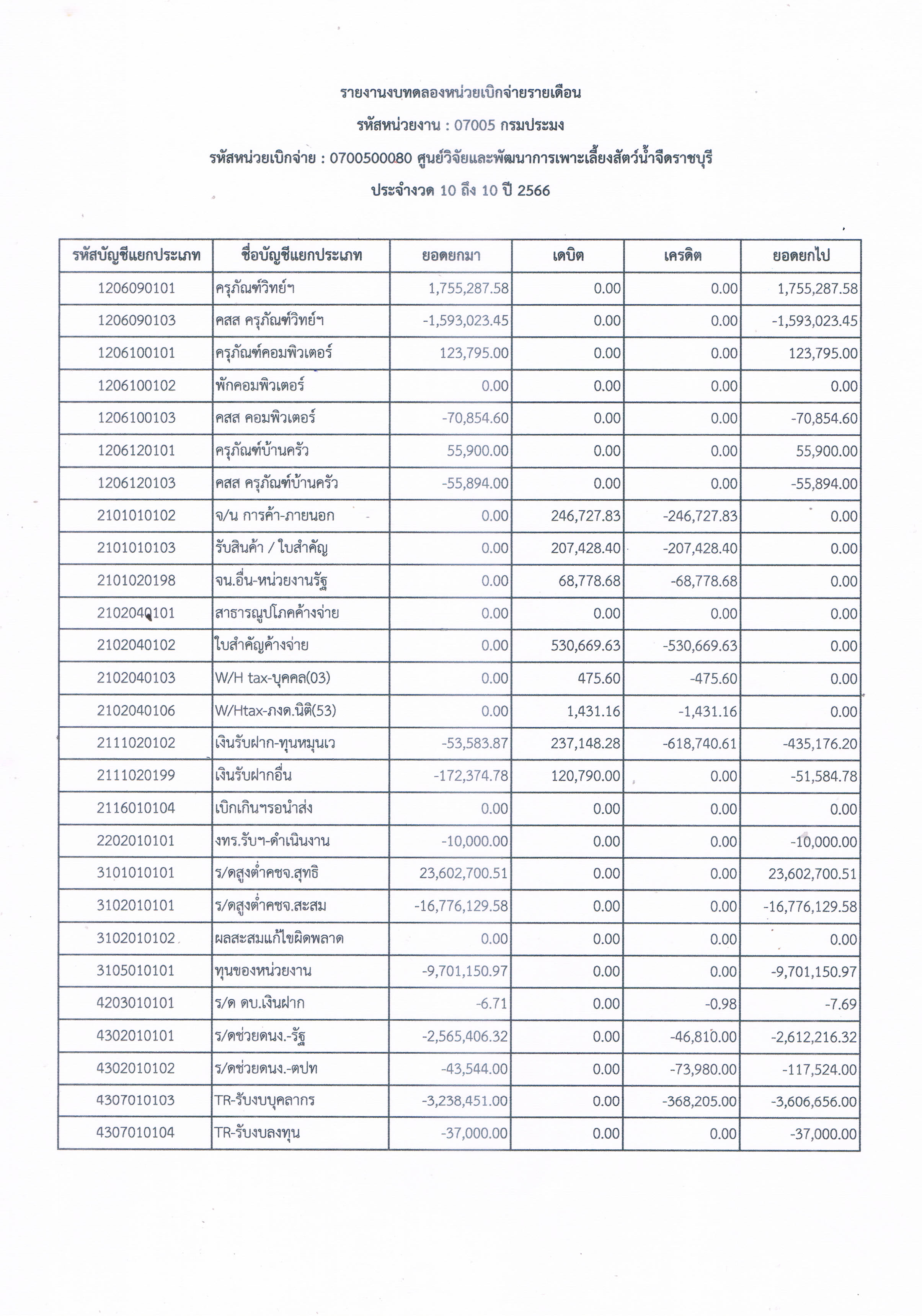 รายงานงบทดลองหน่วยเบิกจ่ายรายเดือน ประจำเดือน กรกฎาคม 2566