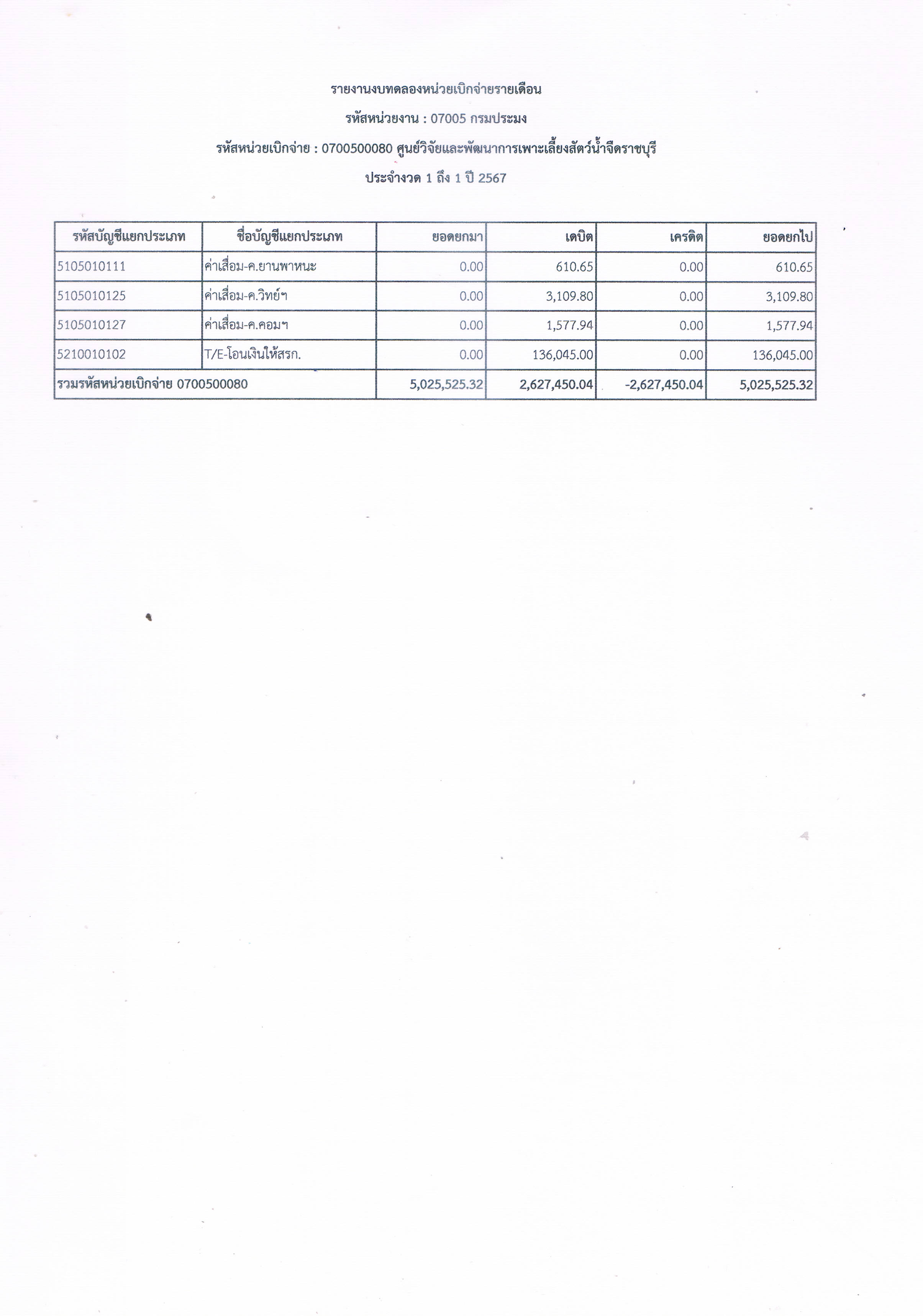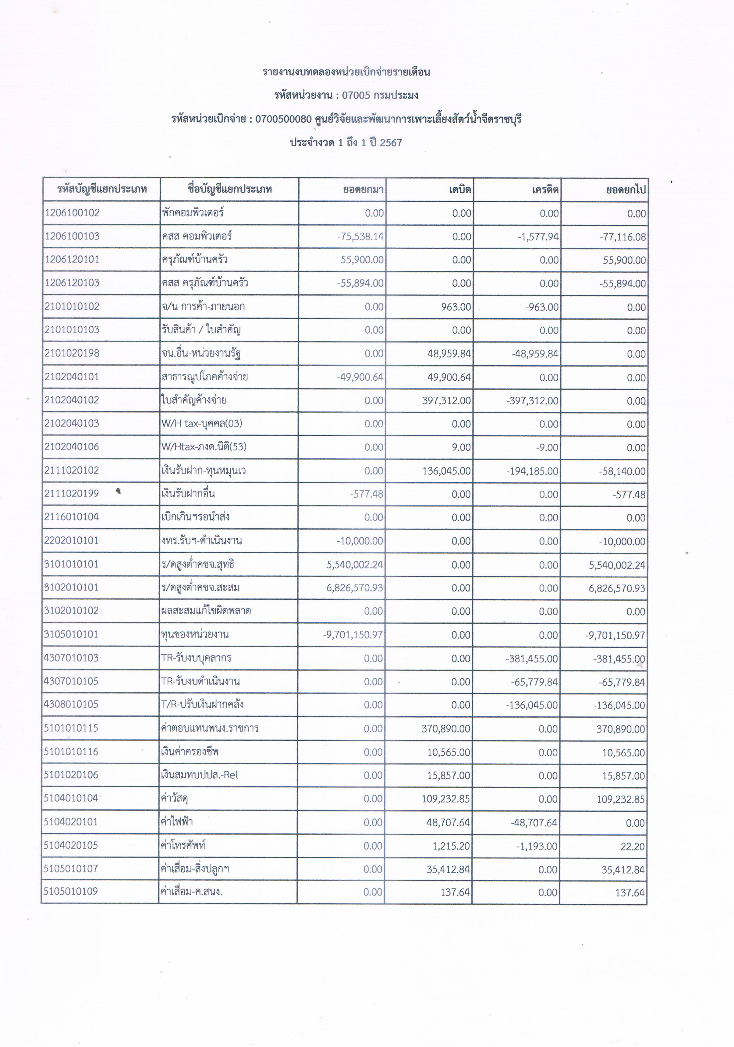รายงานงบทดลองหน่วยเบิกจ่ายรายเดือน ประจำเดือน ตุลาคม 2566