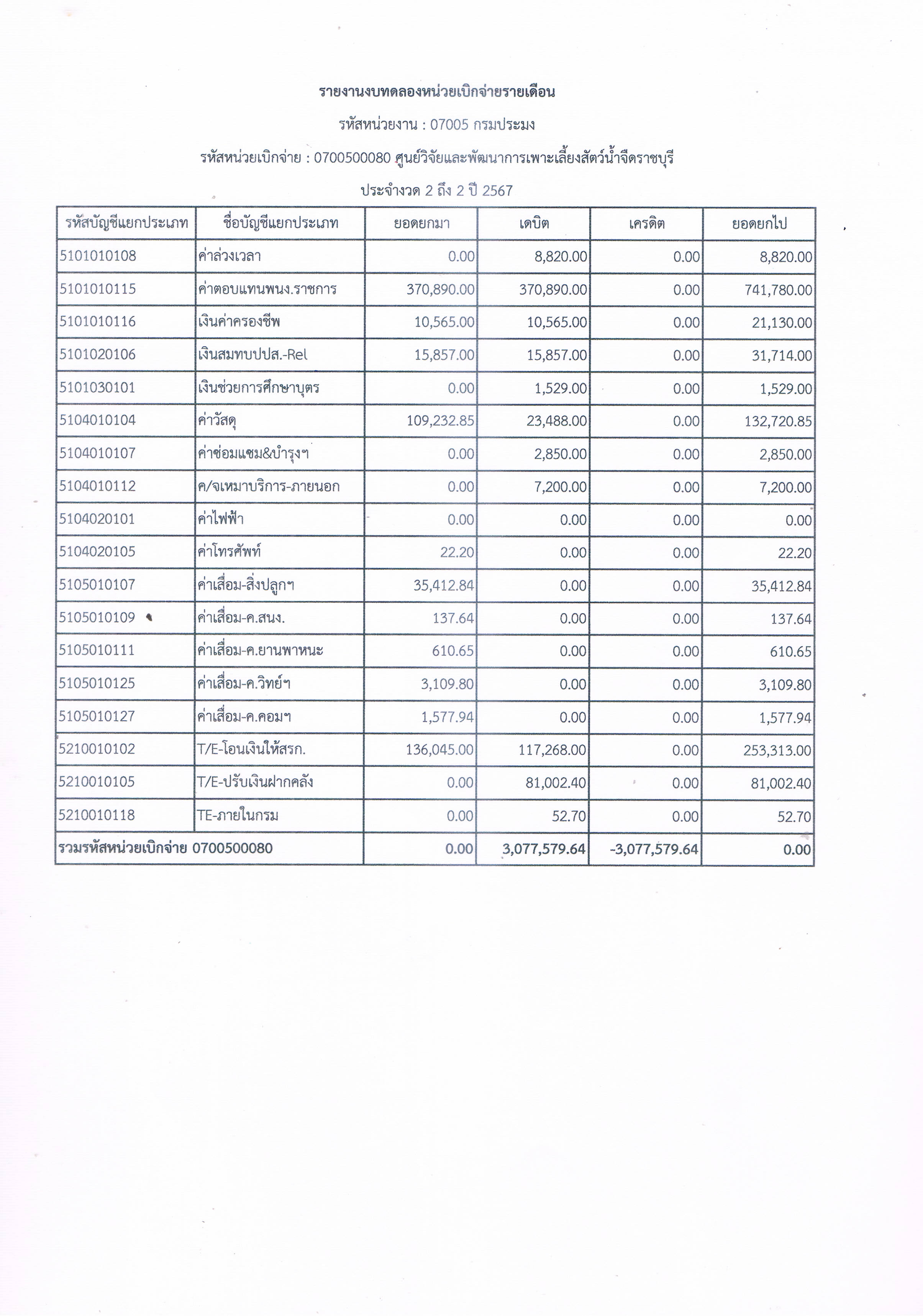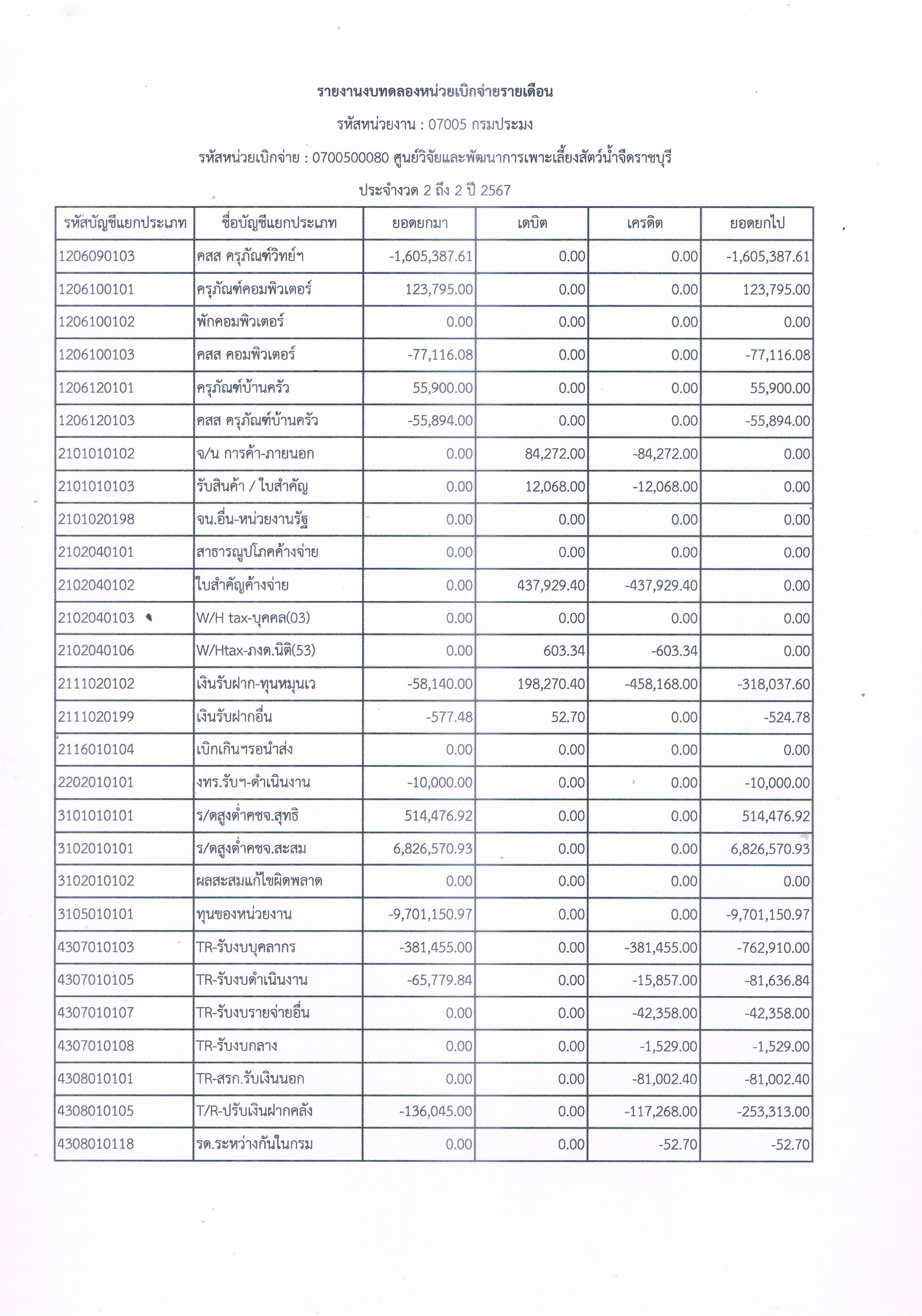 รายงานงบทดลองหน่วยเบิกจ่ายรายเดือน ประจำเดือน พฤศจิกายน 2566