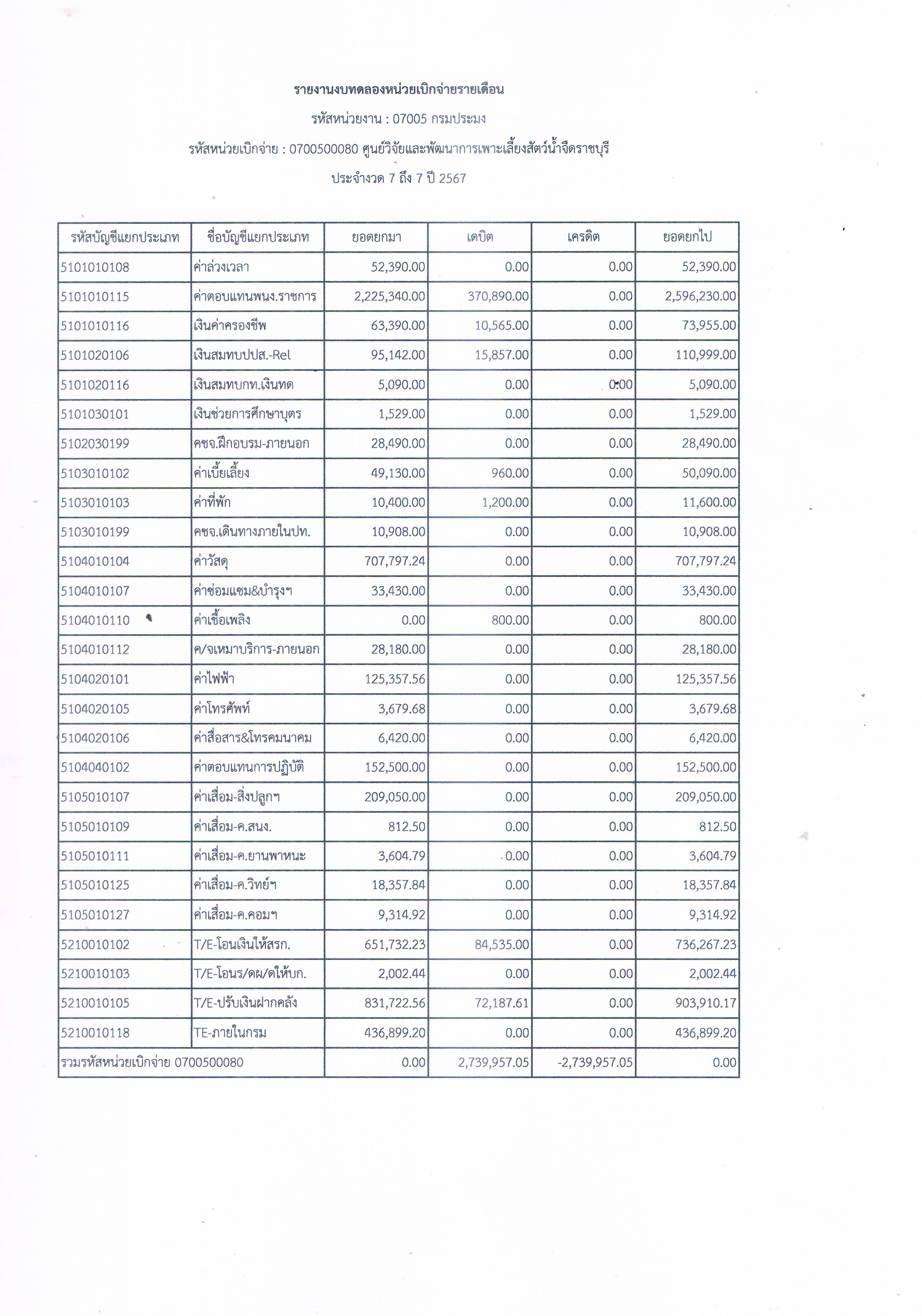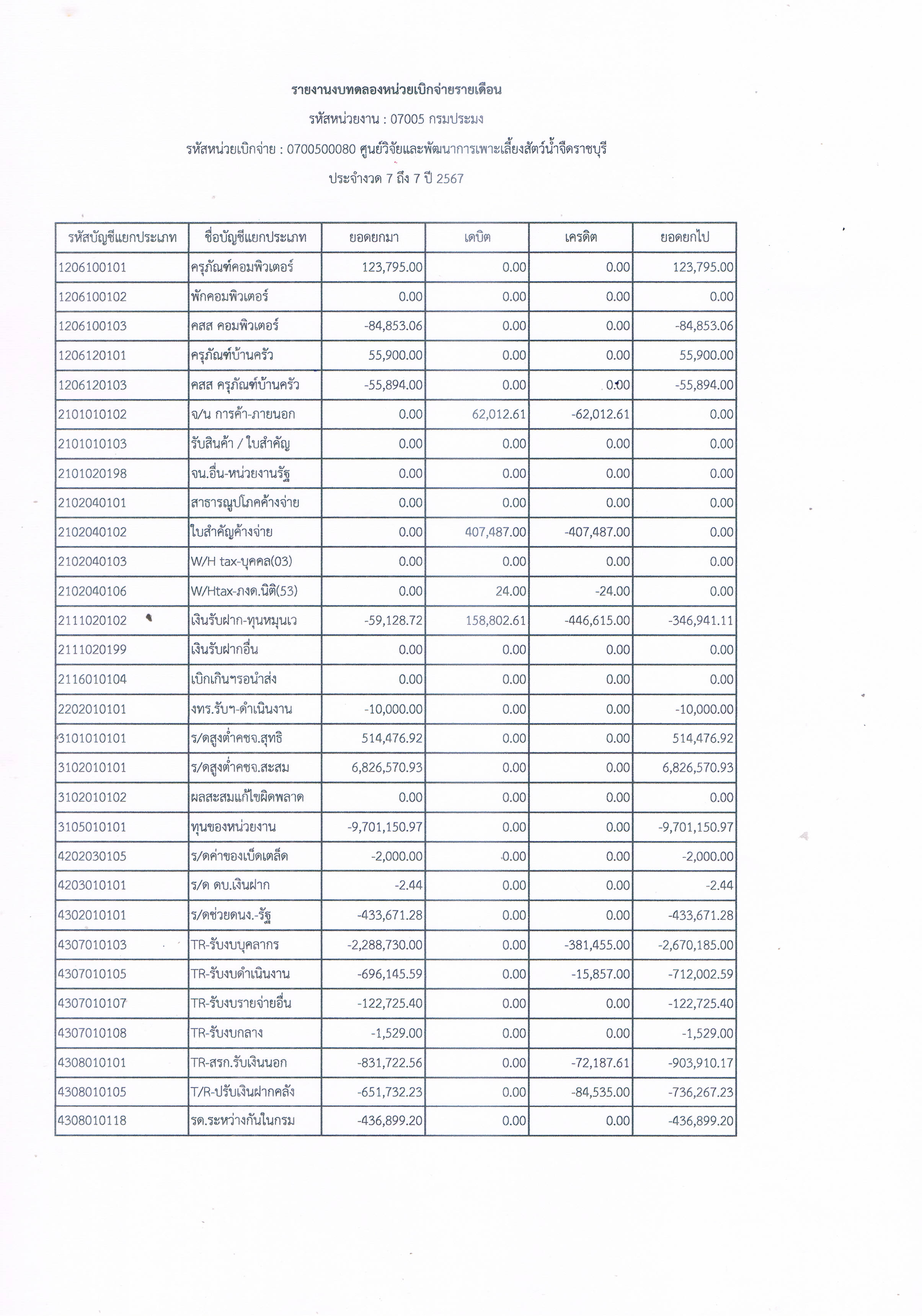 รายงานงบทดลองหน่วยเบิกจ่ายรายเดือน ประจำเดือน เมษายน 2567