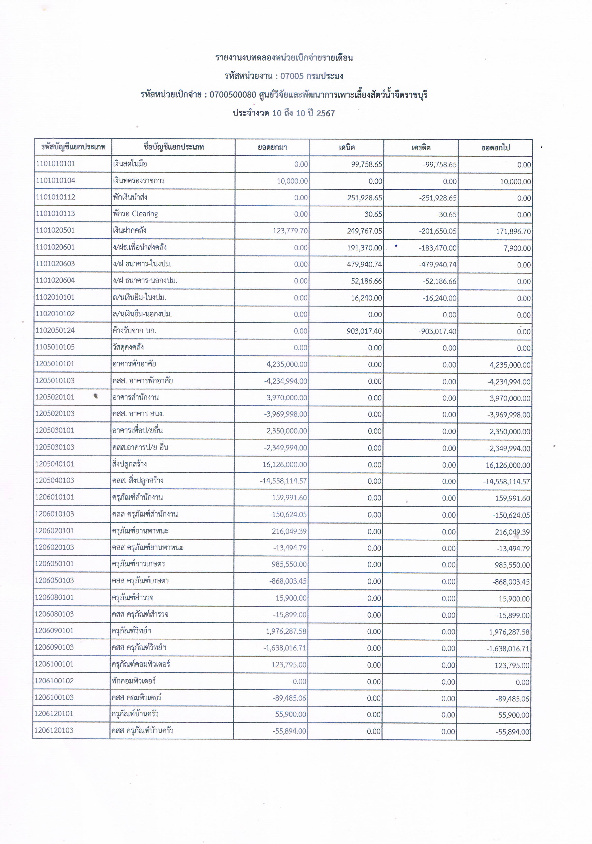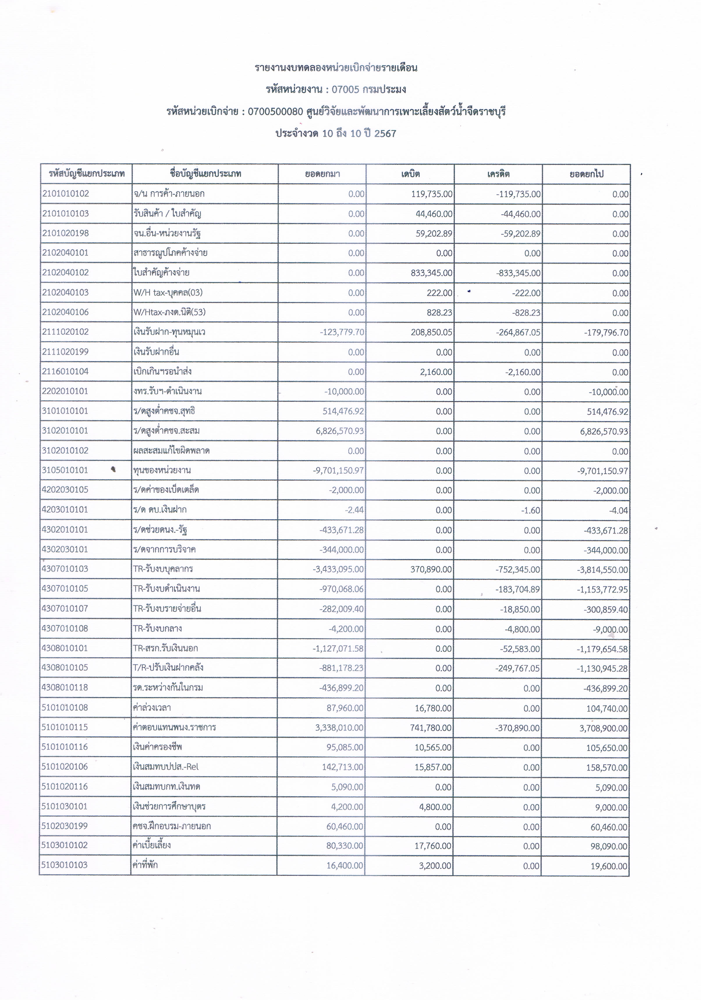 รายงานงบทดลองหน่วยเบิกจ่ายรายเดือน ประจำเดือน กรกฎาคม 2567