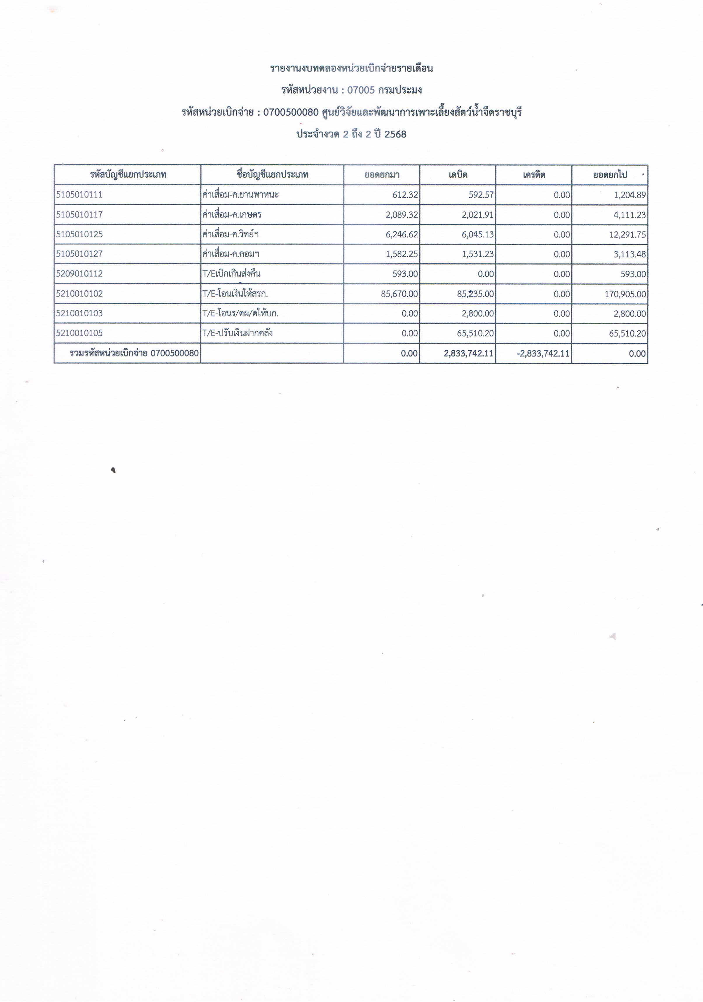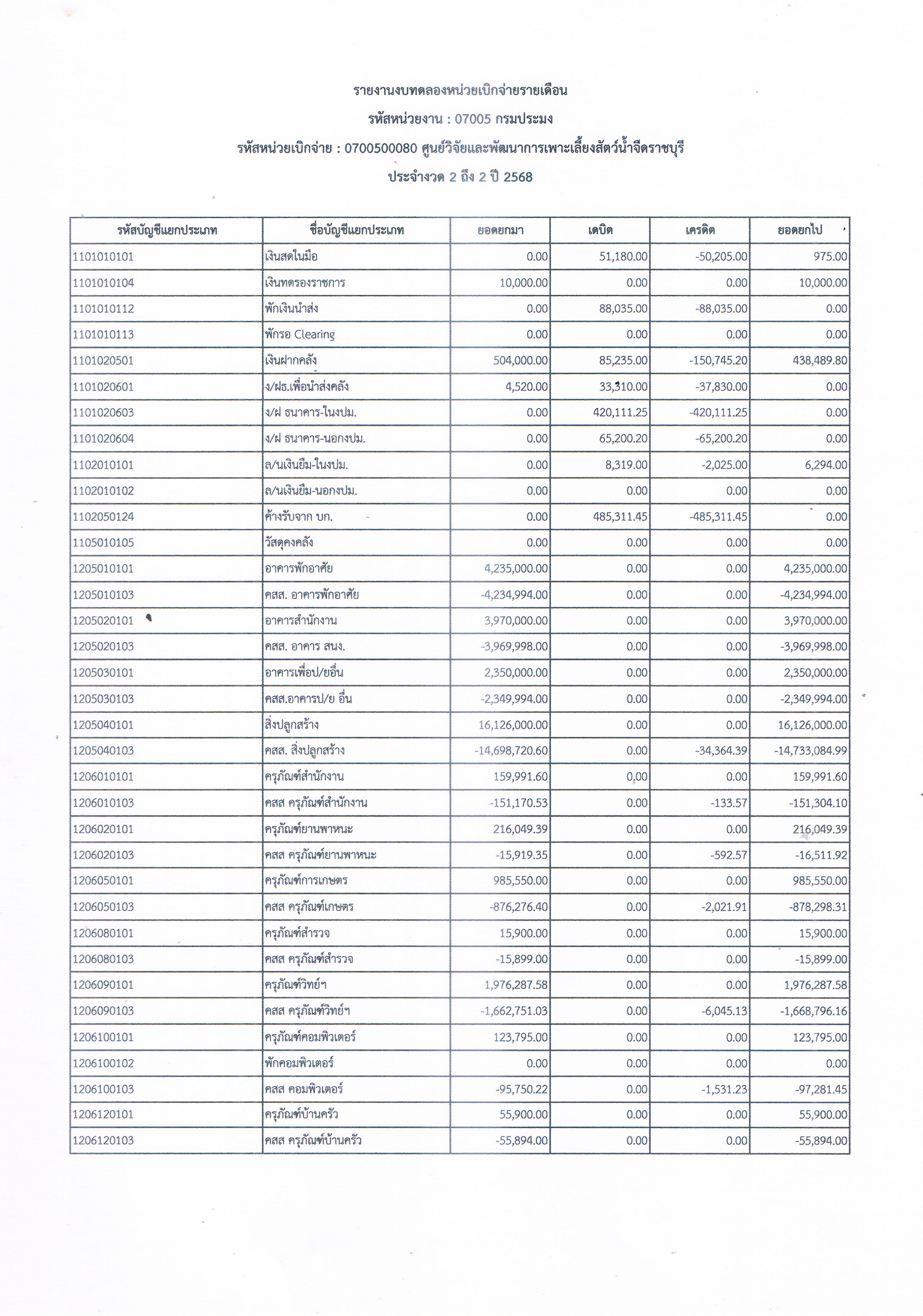 รายงานงบทดลองหน่วยเบิกจ่ายรายเดือน ประจำเดือน พฤศจิกายน 2567..คลิก