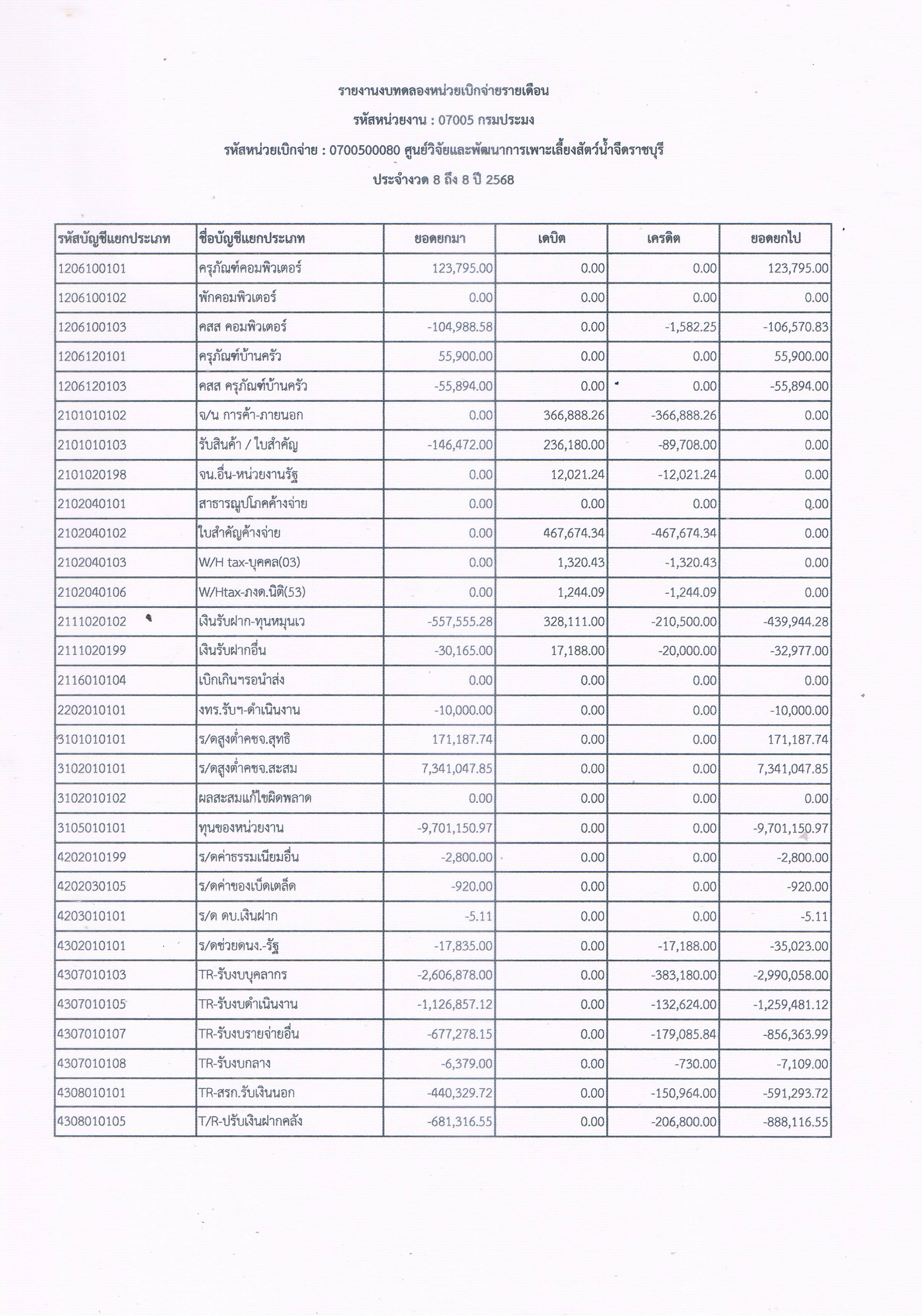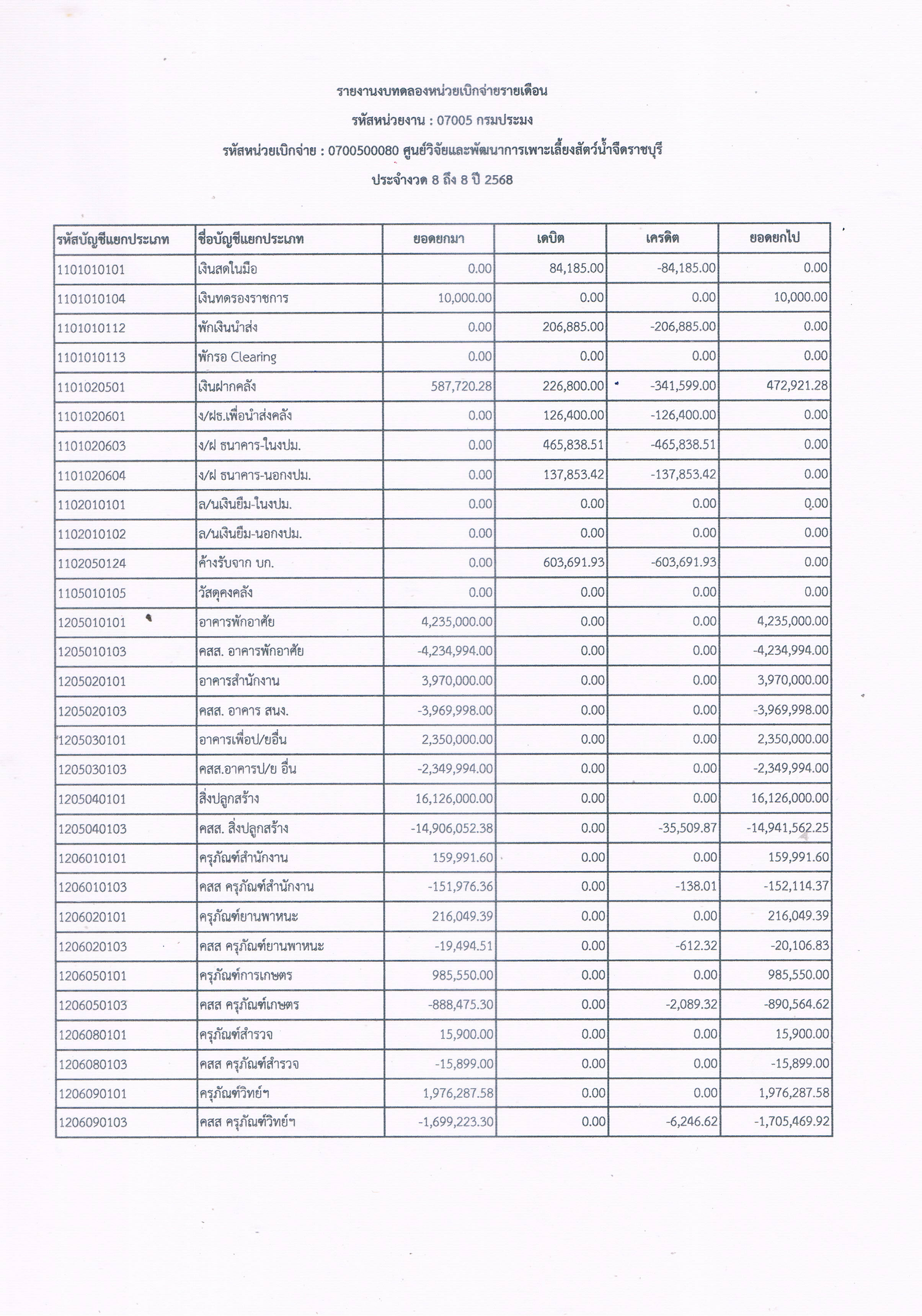 รายงานงบทดลองหน่วยเบิกจ่ายรายเดือน ประจำเดือน พฤษภาคม 2568