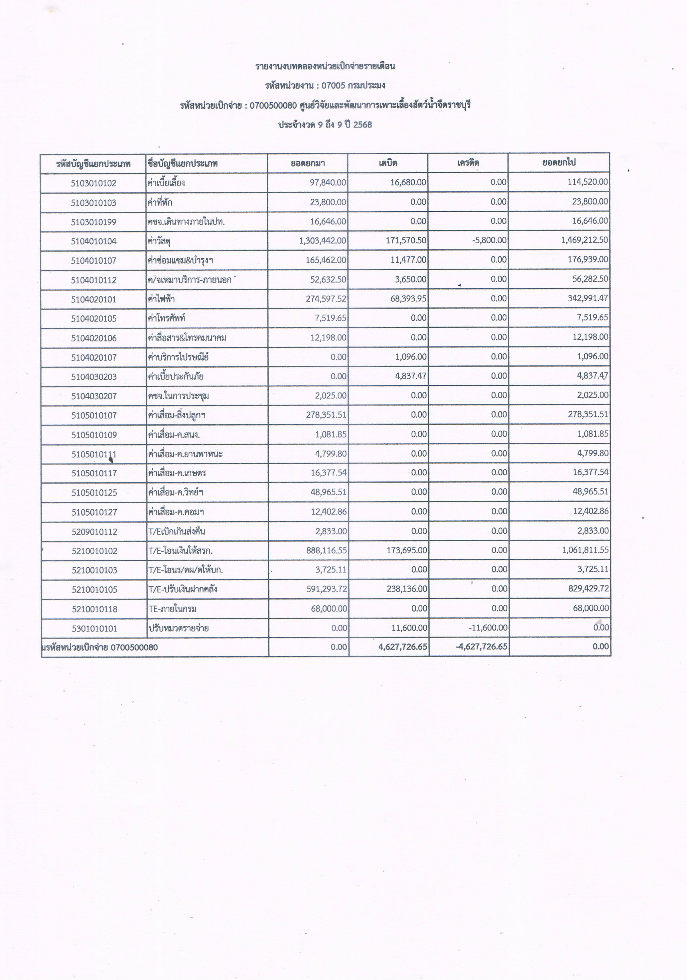 รายงานงบทดลองหน่วยเบิกจ่ายรายเดือน ประจำเดือน มิถุนายน 2568..คลิก