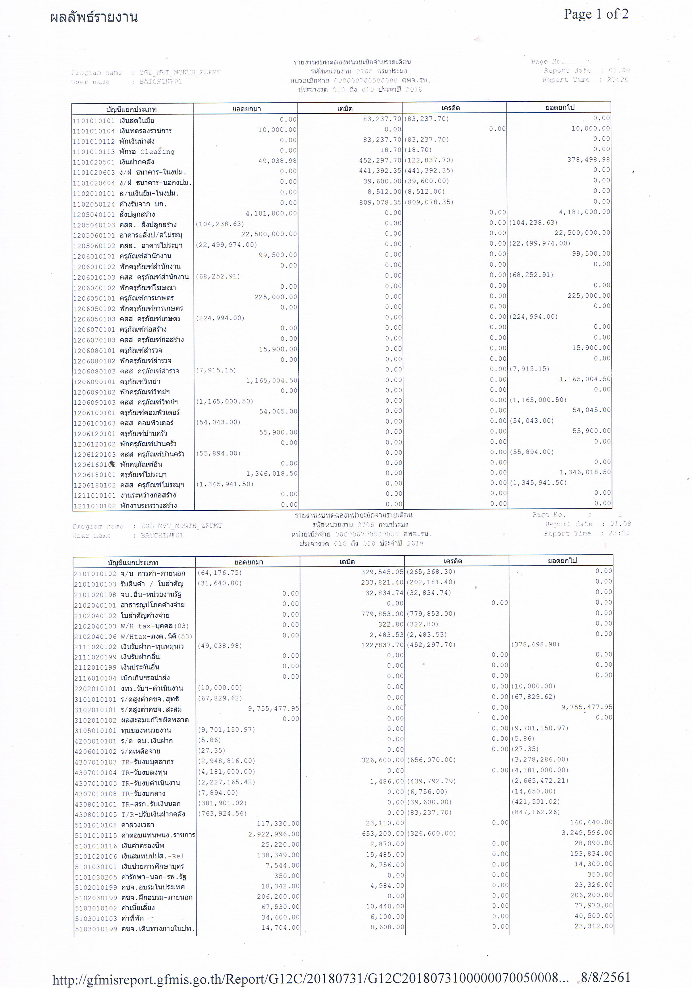 รายงานงบทดลองหน่วยงานเบิกจ่ายรายเดือน กรกฎาคม 2561 ศูนย์วิจัยและพัฒนาการเพาะเลี้ยงสัตว์น้ำจืดราชบุรี