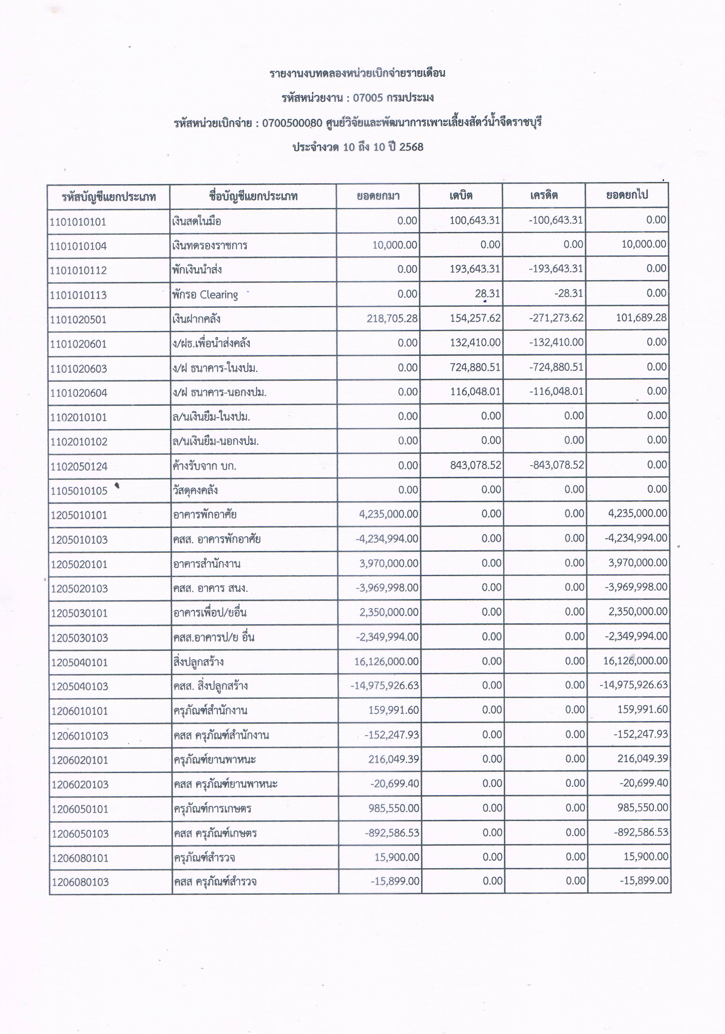 รายงานงบทดลองหน่วยเบิกจ่ายรายเดือน ประจำเดือน กรกฎาคม 2568