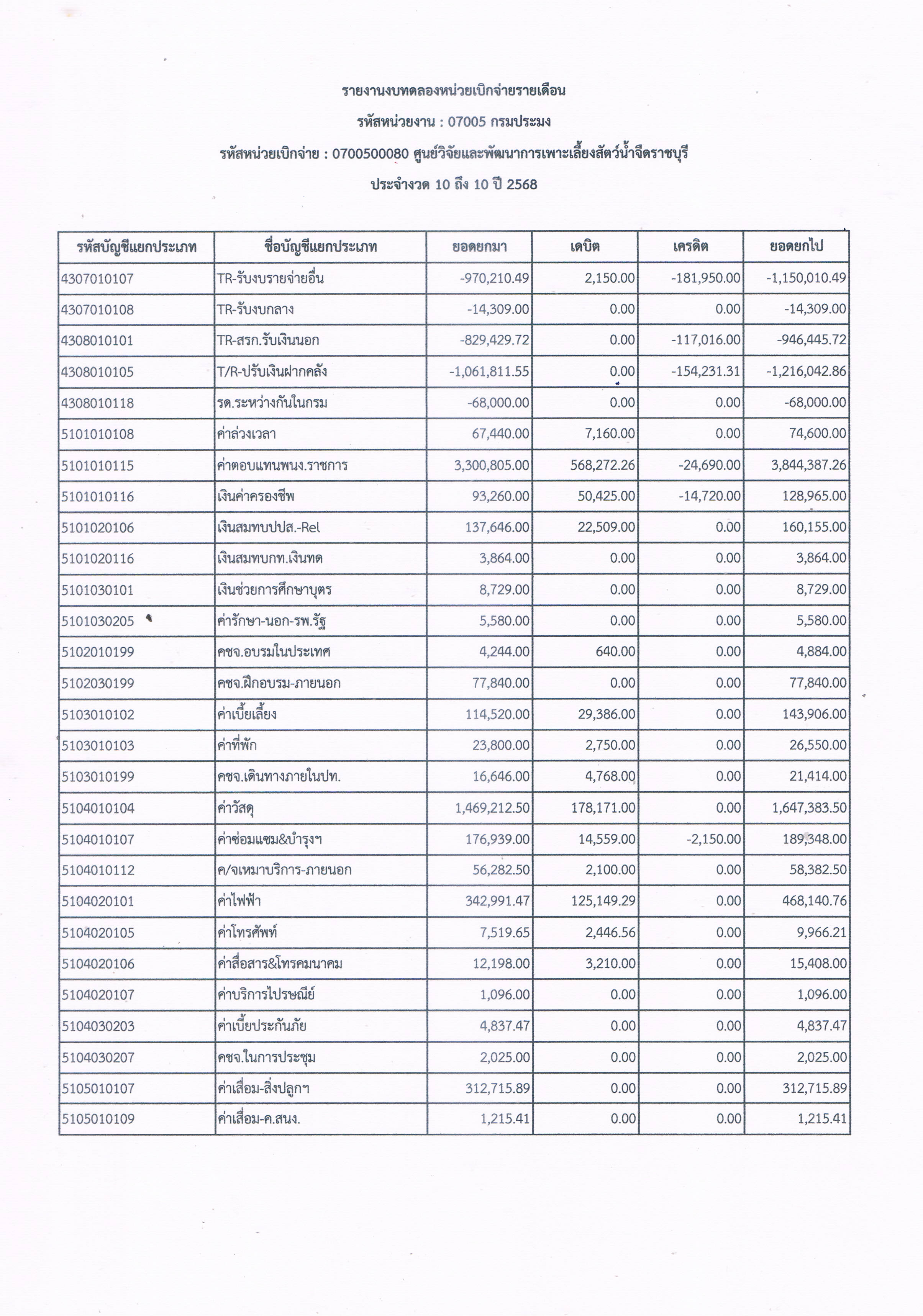 รายงานงบทดลองหน่วยเบิกจ่ายรายเดือน ประจำเดือน กรกฎาคม 2568..คลิก