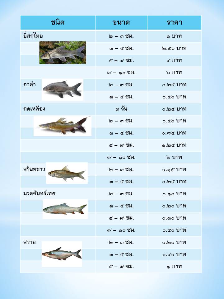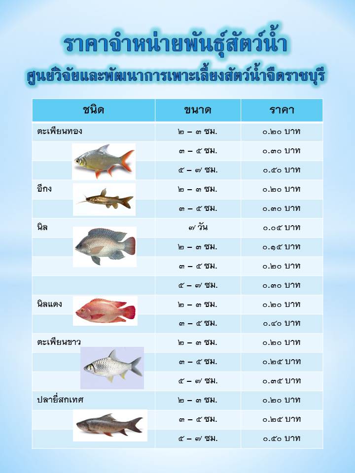 ราคาจำหน่ายพันธุ์สัตว์น้ำ
