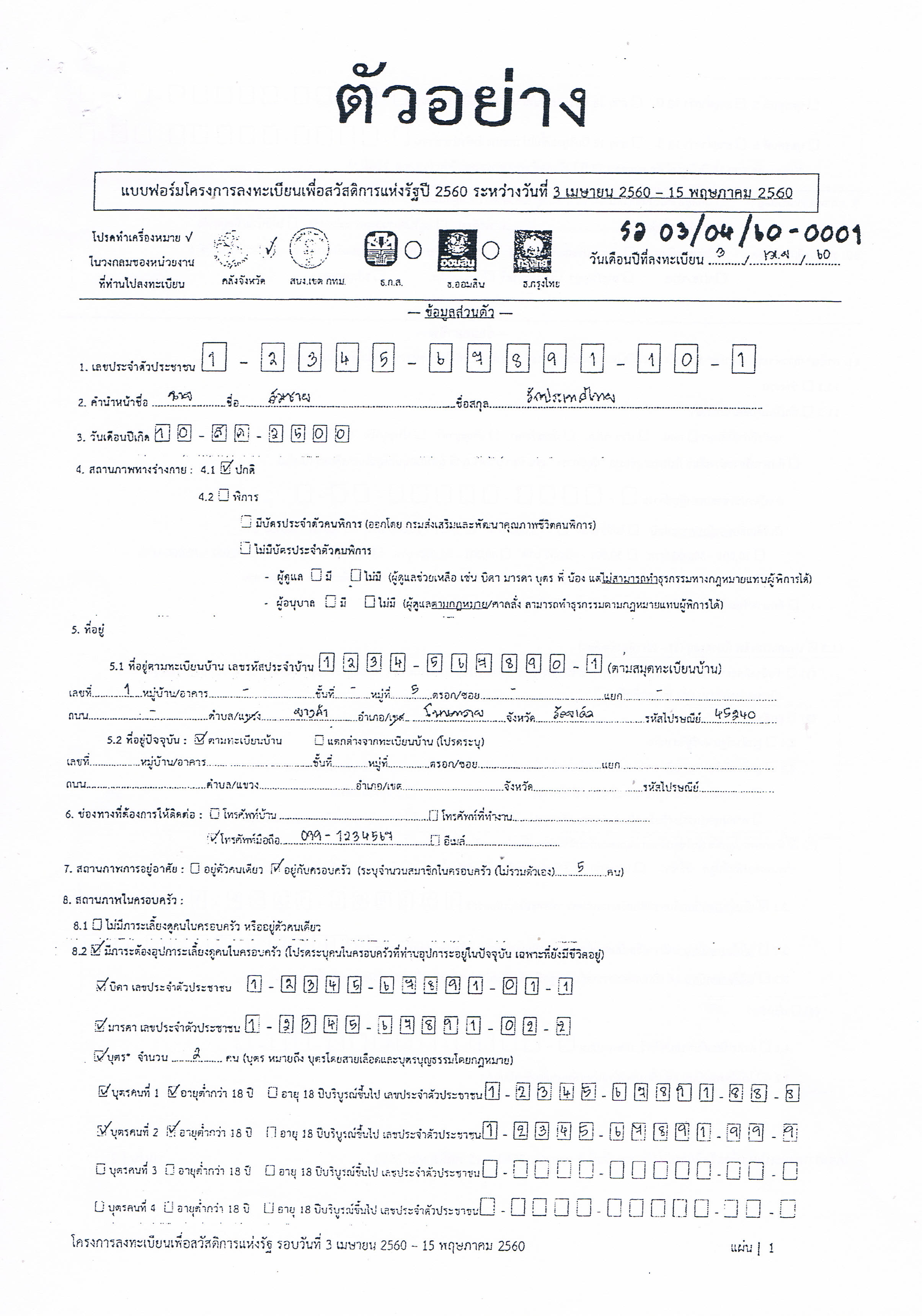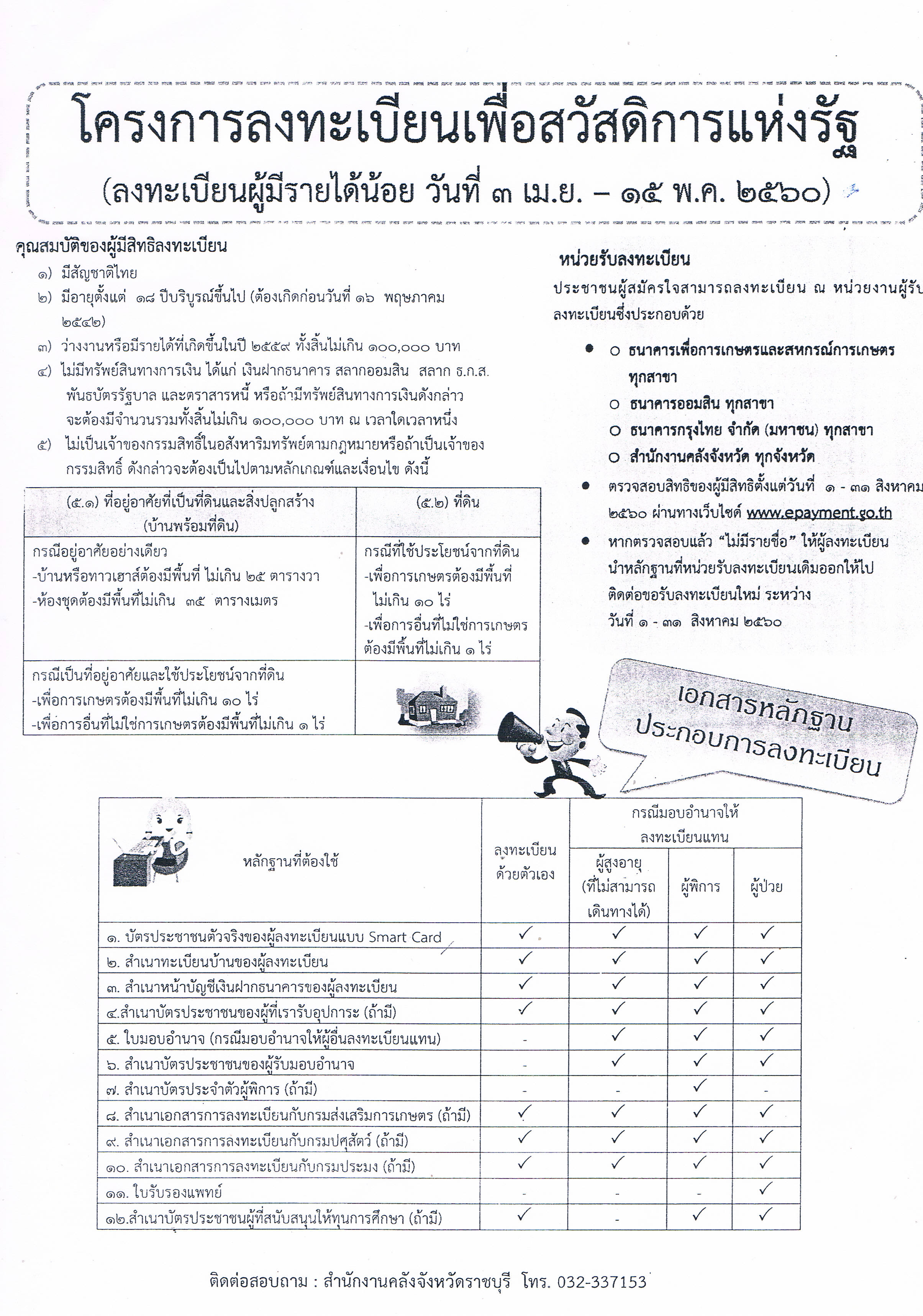 (ลงทะเบียนผู้มีรายได้น้อย วันที่ 3 เม.ย. - 15 พ.ค. 2560)
