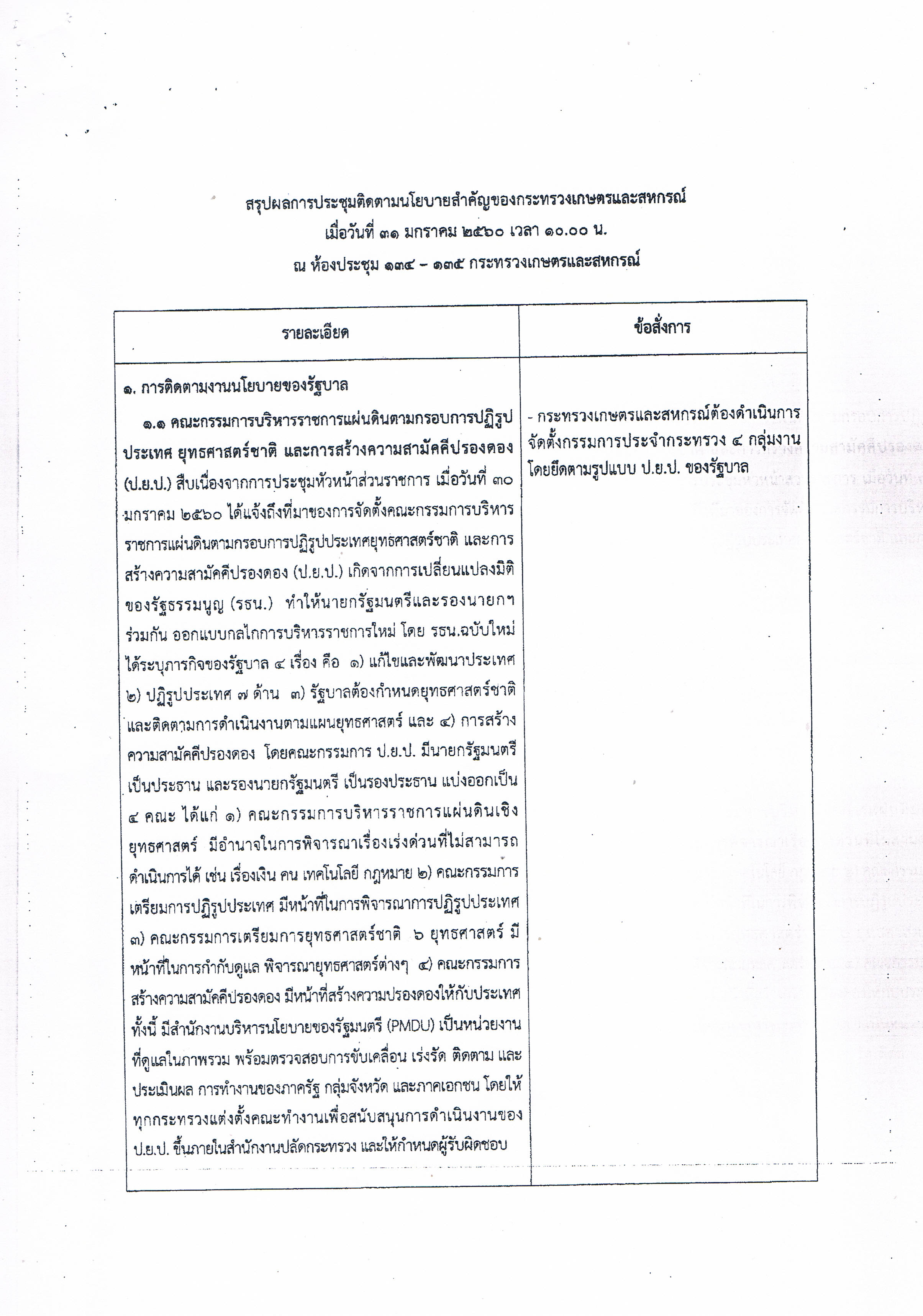 สรุปผลการประชุมติดตามนโยบายสำคัญของกระทรวงเกษตรและสหกรณ์ เมื่อวันที่ 31 มกราคม 2560 เวลา 10.00 น. ณ ห้องประชุม 134 - 135 กระทรวงเกษตรและสหกรณ์