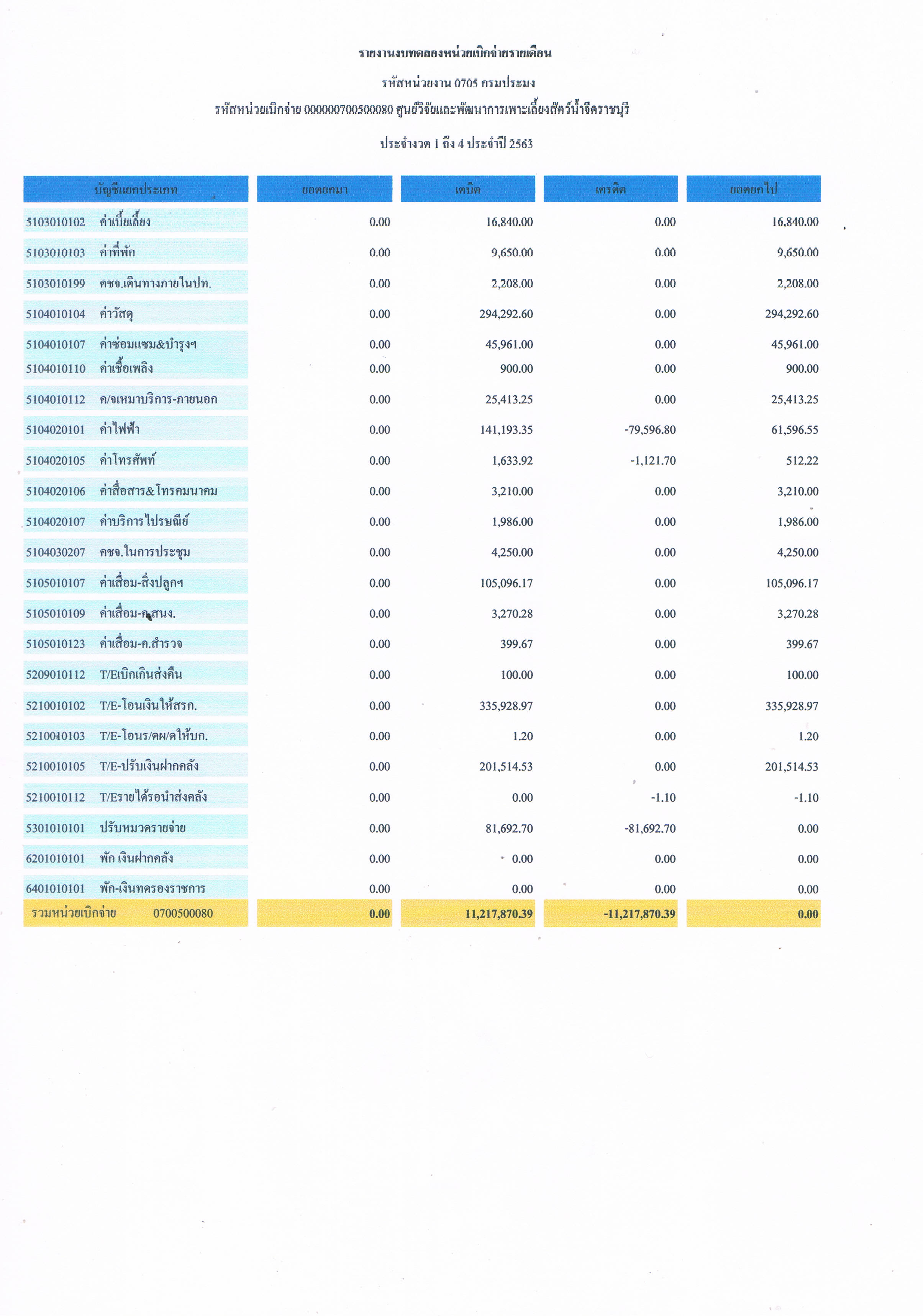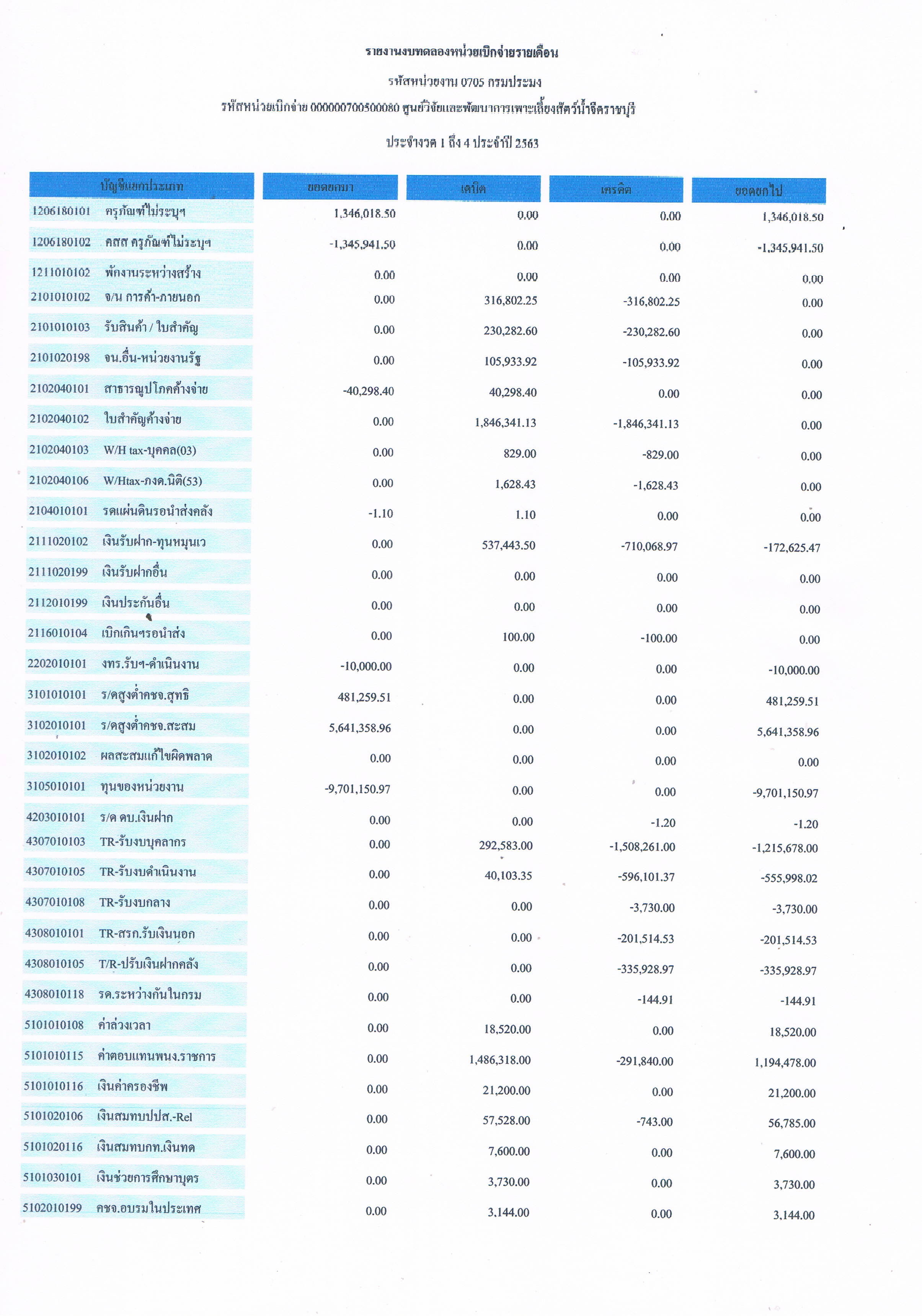 รายงานงบทดลองหน่วยเบิกจ่ายรายเดือน มกราคม 2563