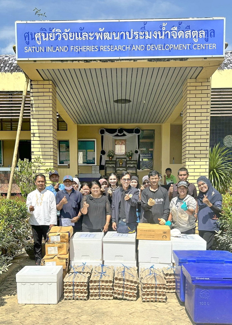 วันที่ 4 ธันวาคม 2568 ณ ศูนย์วิจัยและพัฒนาประมงน้ำจืดสตูล ดร.ฐิติพร หลาวประเสริฐ อธิบดีกรมประมง มอบหมายให้ นายณัฐชพงศ์ เพชรฤทธิ์ ผู้อำนวยการศูนย์วิจัยและพัฒนาประมงน้ำจืดพัทลุง เข้าเยี่ยมเยียนและนำสิ่งของสำหรับบริโภค ประกอบด้วย เนื้อไก่สด 100 กิโลกรัม เนื้อไก่ปรุงรส 20 กิโลกรัม ไข่ไก่สด 1,500 ฟอง และไข่ต้มสมุนไพร 960 ถุง มอบให้แก่หน่วยงานสังกัดกรมประมงในจังหวัดสตูลที่ประสบอุทกภัย ประกอบด้วยศูนย์วิจัยและพัฒนาประมงน้ำจืดสตูล สำนักงานประมงจังหวัดสตูล ศูนย์วิจัยและพัฒนาประมงทะเลสตูล และศูนย์บริหารจัดการด่านตรวจประมงเขต 9 สตูล โดยมีนางณิชารินทร์ แก้วฤทธิ์ ผู้อำนวยการศูนย์วิจัยและพัฒนาประมงน้ำจืดสตูล นายประพัฒน์ แก้วมณี ผู้อำนวยการศูนย์วิจัยและพัฒนาประมงทะเลสตูล ข้าราชการและเจ้าหน้าที่ ศูนย์วิจัยและพัฒนาประมงน้ำจืดสตูล ร่วมกันรับมอบสิ่งของดังกล่าว เพื่อนำไปประกอบอาหารและแจกจ่ายให้แก่บุคลากรในสังกัดต่อไป บุคคลากรทุกคนมีความยินดีและซาบซึ้งใจเป็นอย่างยิ่งที่ได้รับกำลังใจและความช่วยเหลือจากผู้บริหารกรมประมง