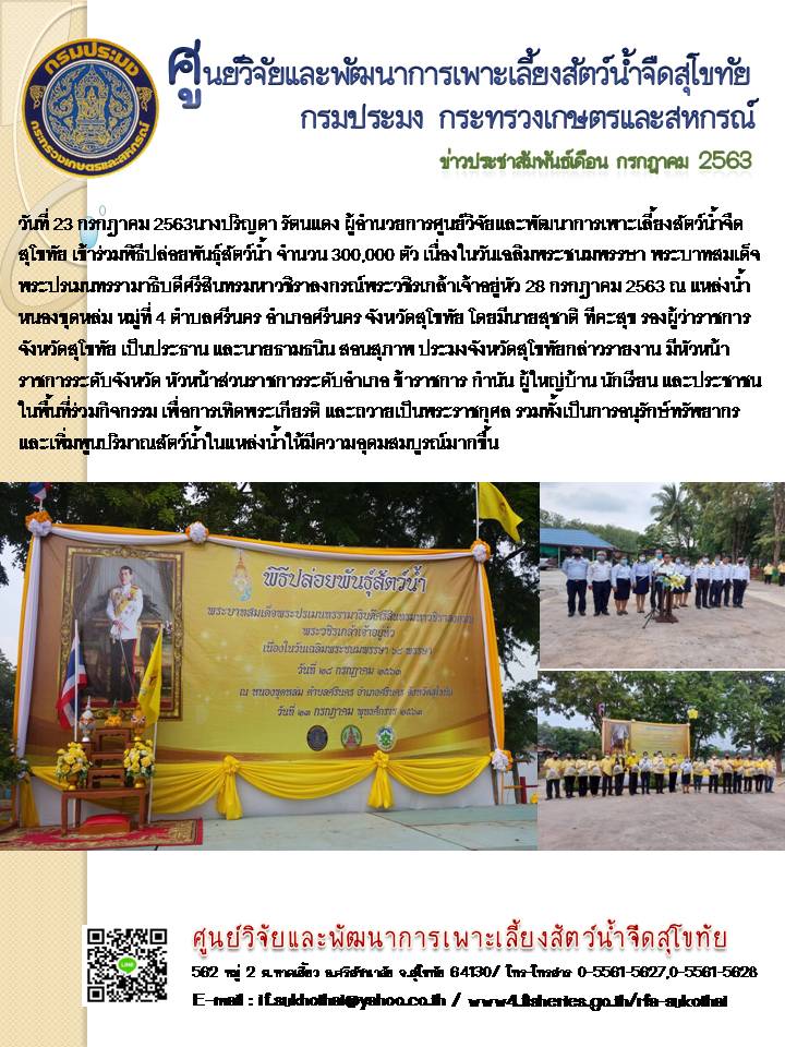 สงวนลิขสิทธิ์ พ.ศ.2568 ศูนย์วิจัยและพัฒนาการเพาะเลี้ยงสัตว์น้ำจืดสุโขทัย