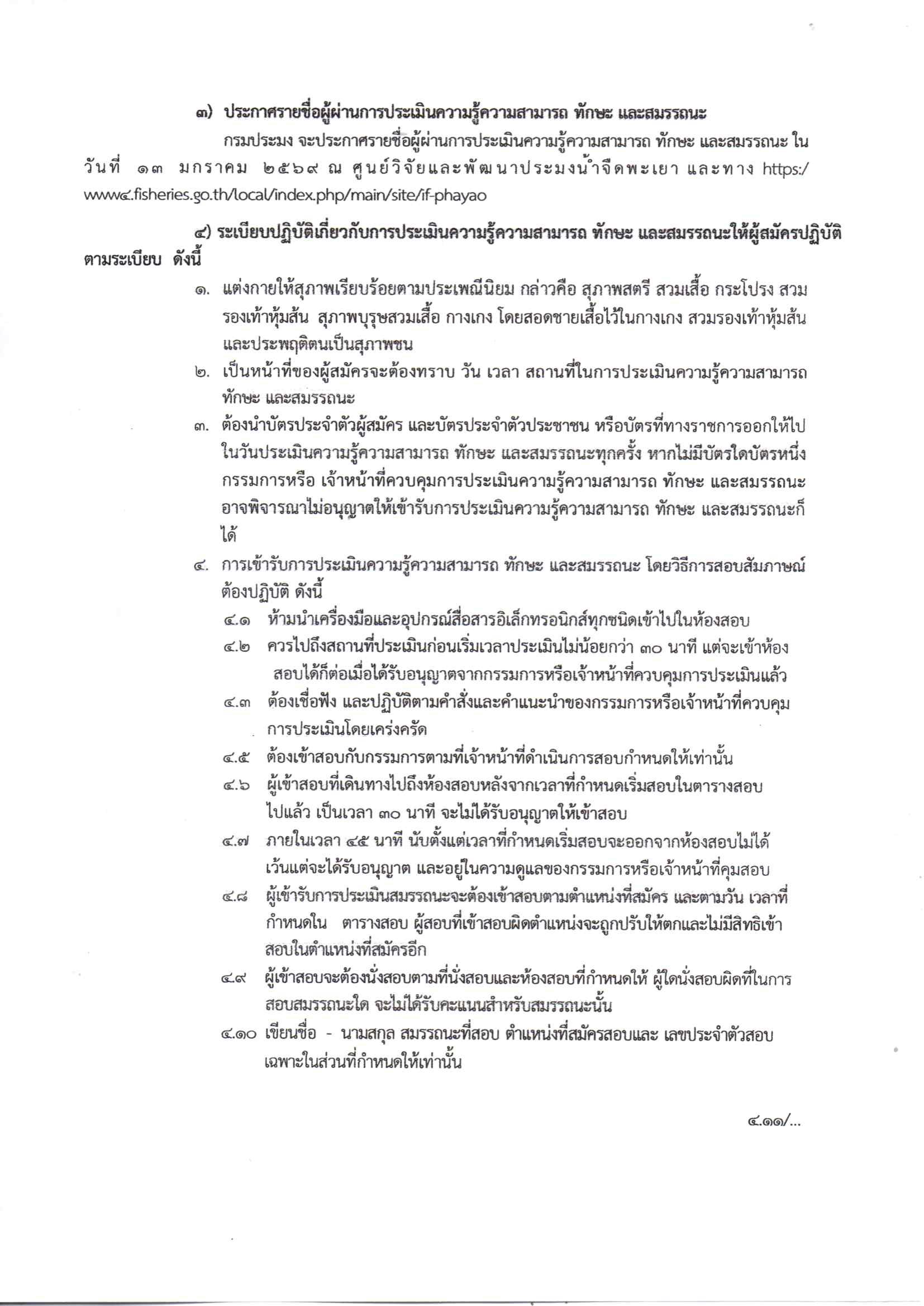 การประเมินโดยวิธีการสอบสัมภาษณ์ วันที่ 30 ธันวาคม 2568 เวลา 13.00 น. เป็นต้นไป ณ ห้องประชุมศูนย์วิจัยและพัฒนาประมงน้ำจืดพะเยา