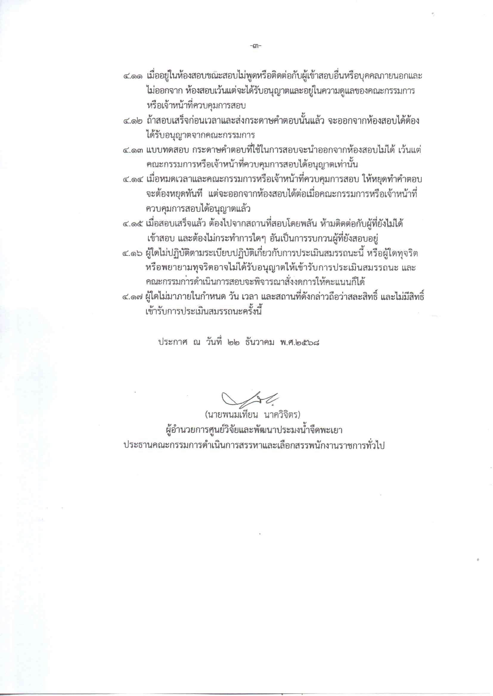 การประเมินโดยวิธีการสอบข้อเขียน วันที่ 30 ธันวาคม 2568 เวลา 09.00 - 11.30 น. ณ อาคารแฟลต ภายในศูนย์วิจัยและพัฒนาประมงน้ำจืดพะเยา