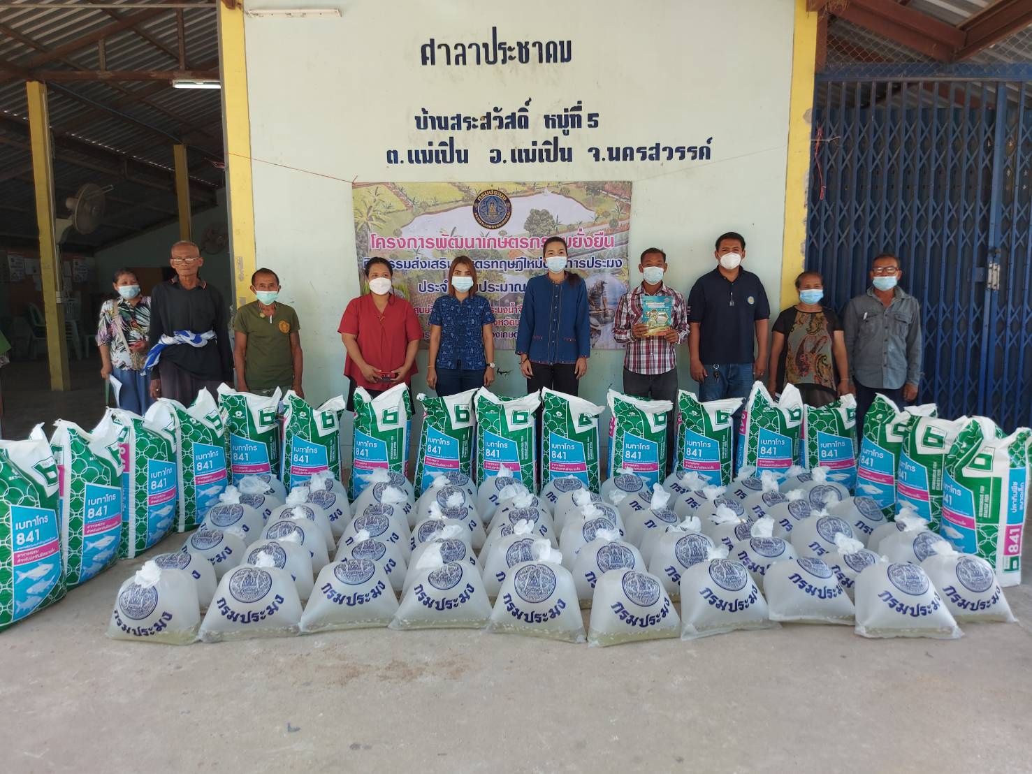 ศูนย์วิจัยและพัฒนาประมงน้ำจืดนครสวรรค์ มอบปัจจัยการผลิต(พันธุ์ปลาตะเพียน,ปลานิล)แก่เกษตรกรที่เข้าร่วมโครงการพัฒนาเกษตรกรรมยั่งยืน