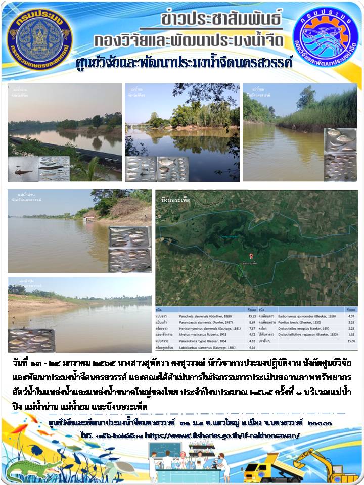 กิจกรรมการประเมินสถานภาพทรัพยากรสัตว์น้ำในแหล่งน้ำและแหล่งน้ำขนาดใหญ่ของไทย ประจำปีงบประมาณ 2565 ครั้งที่ 1