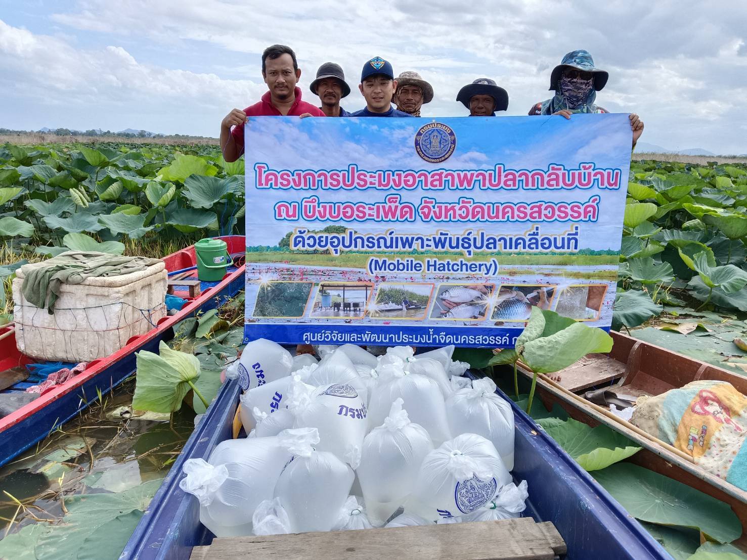 วันที่ 13 มิถุนายน 2567 ศูนย์วิจัยและพัฒนาประมงน้ำจืดนครสวรรค์ร่วมกับหน่วยป้องกันและปราบปรามประมงน้ำจืดบึงบอระเพ็ด นครสวรรค์ และชาวประมงบ้านรางจิก ปล่อยพันธุ์ปลาชะโอนอายุ 2 วัน จำนวน 180,000 ตัว โครงการฟื้นฟูและบริหารจัดการทรัพยากรประมงในแหล่งน้ำสำคัญ ประจำปีงบประมาณ พ.ศ.2567 (ประมงร่วมอาสาพาปลากลับบ้าน) ณ บึงบอระเพ็ดวันที่ 13 มิถุนายน 2567 ศูนย์วิจัยและพัฒนาประมงน้ำจืดนครสวรรค์ร่วมกับหน่วยป้องกันและปราบปรามประมงน้ำจืดบึงบอระเพ็ด นครสวรรค์ และชาวประมงบ้านรางจิก ปล่อยพันธุ์ปลาชะโอนอายุ 2 วัน จำนวน 180,000 ตัว โครงการฟื้นฟูและบริหารจัดการทรัพยากรประมงในแหล่งน้ำสำคัญ ประจำปีงบประมาณ พ.ศ.2567 (ประมงร่วมอาสาพาปลากลับบ้าน) ณ บึงบอระเพ็ด