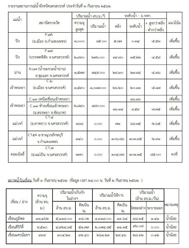รายงานสถานการณ์น้ำท่า วันที่ 3 ก.ย. 2562 (เวลา 08.40 น.)