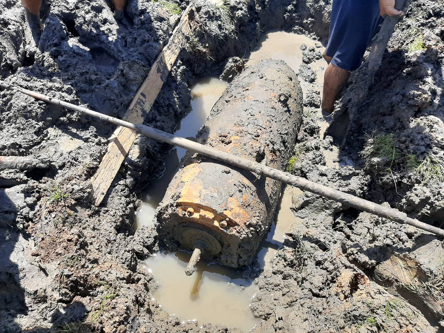พบระเบิด M117 กลางบึงบอระเพ็ดหลังน้ำลดแต่ชนวนไม่สามารถใช้ได้แล้ว EOD กองบิน 4 เก็บกู้ทำลายทิ้ง