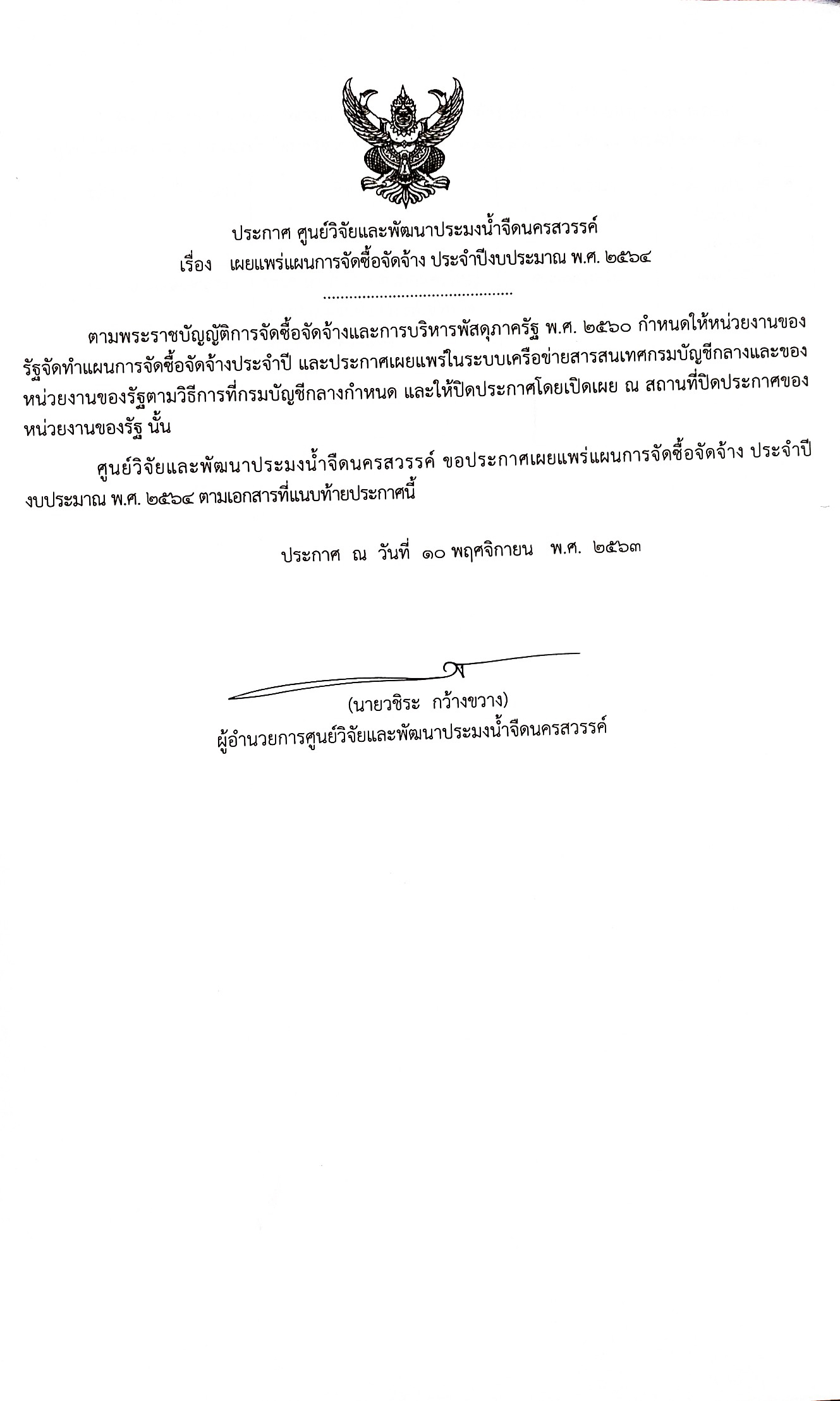 ประกาศ ศูนย์วิจัยและพํฒนาประมงน้ำจืดนครสวรรค์