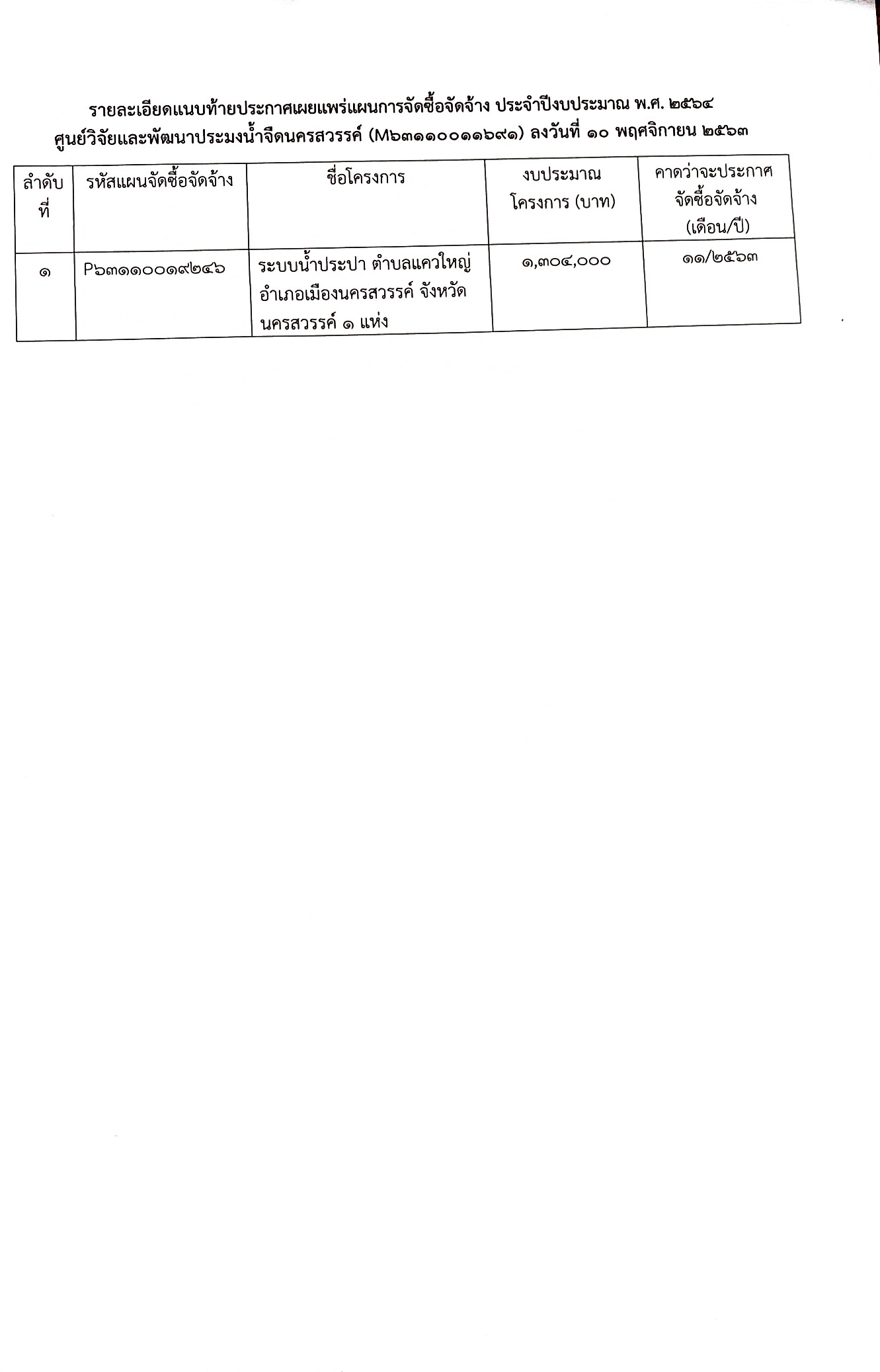แผนการจัดซื้อจัดจ้าง ประจำปีงบประมาณ 2564