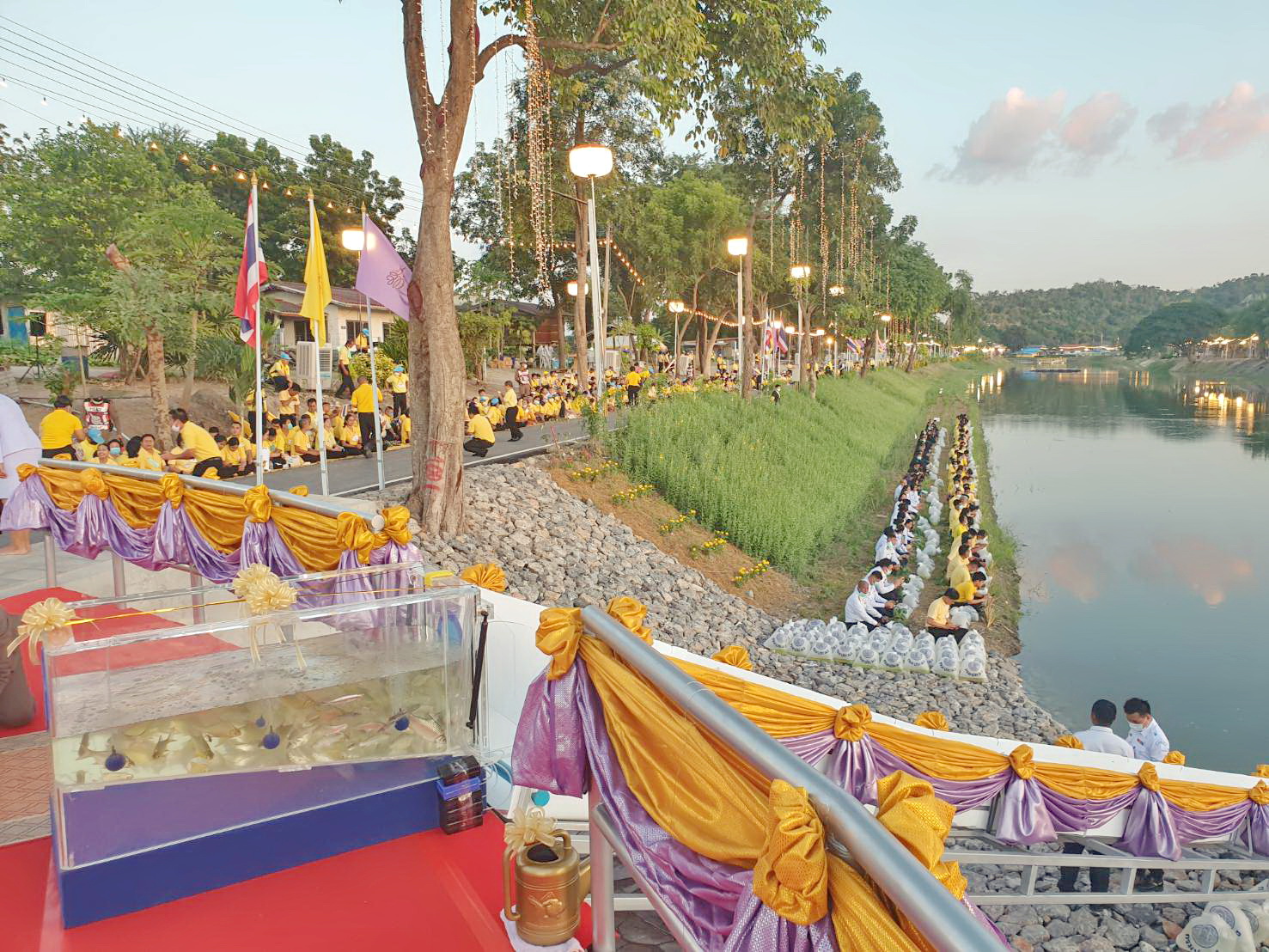 พระบาทสมเด็จพระเจ้าอยู่หัว และสมเด็จพระนางเจ้าฯ พระบรมราชินี เสด็จฯสระบ่อดินขาว ทรงปล่อยพันธุ์ปลาจำนวน 69 ตัว