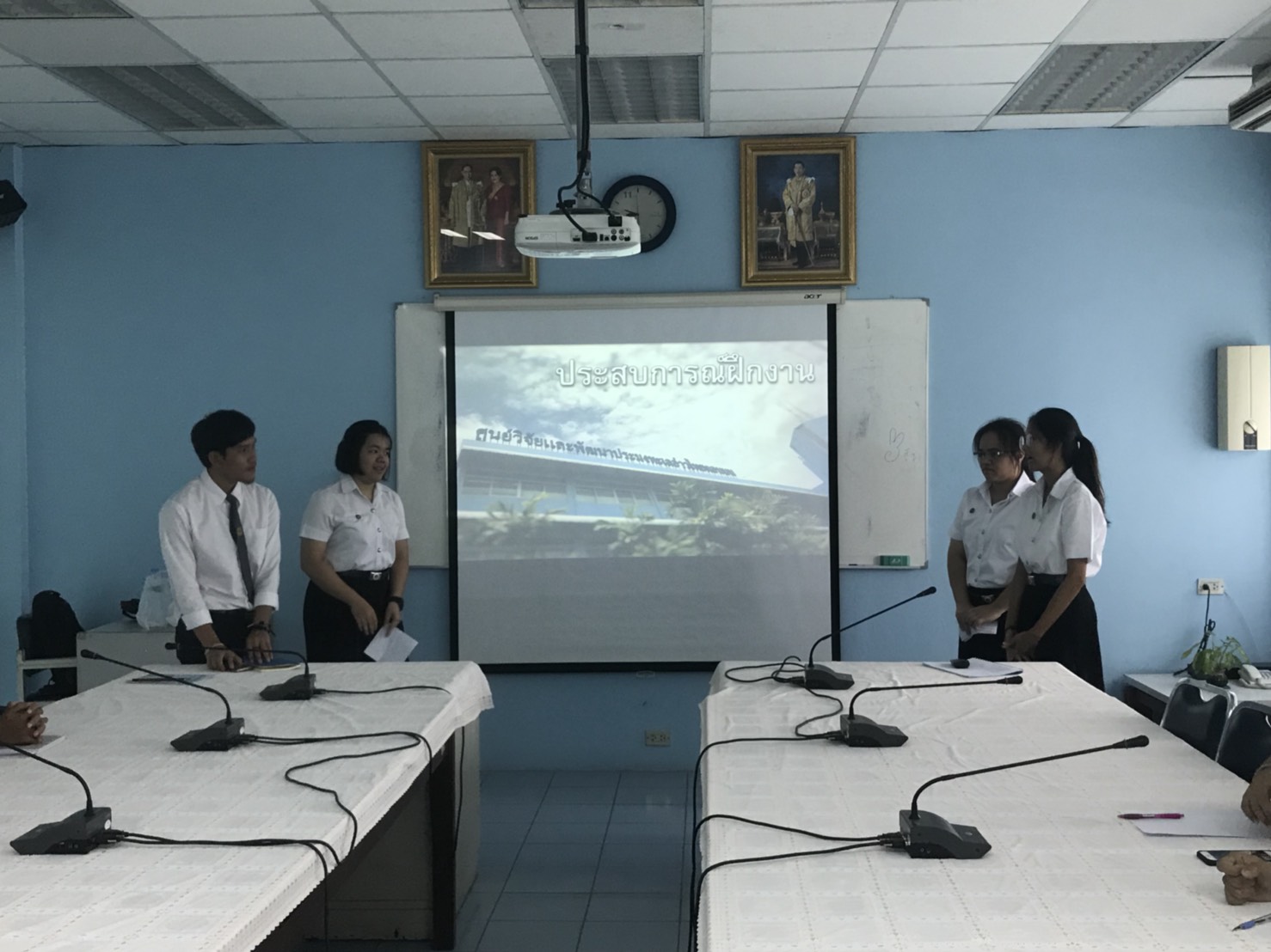 นิสิตฝึกงาน คณะเทคโนโลยีทางทะเล มหาวิทยาลัยบรูพา วิทยาเขตจันทบุรี นำเสนอข้อมูลการฝึกงานของนิสิต ณ ศูนย์วิจัยและพัฒนาประมงอ่าวไทยตอนบน (สมุทรปราการ)