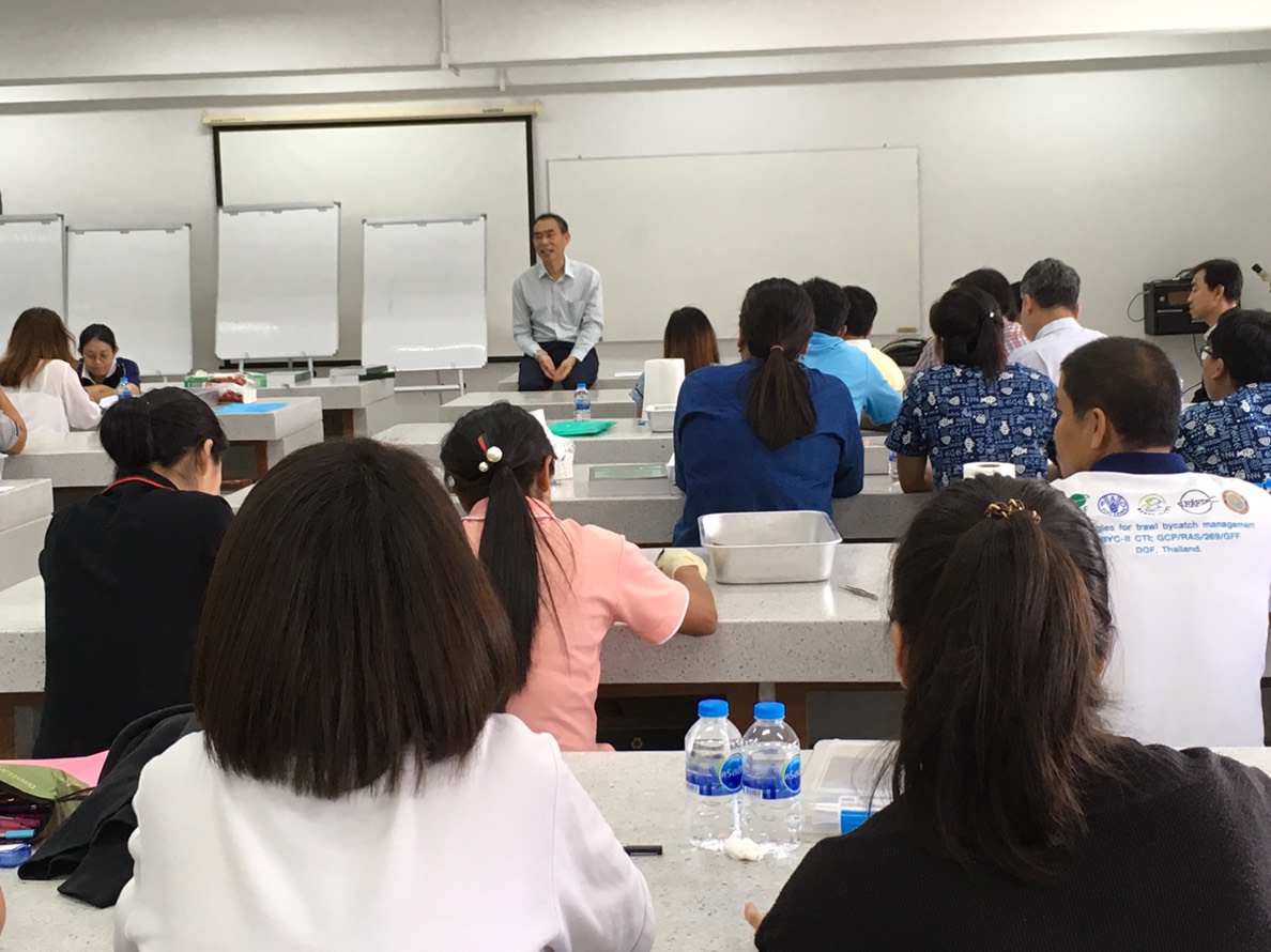 นักวิชาการประมงและเจ้าหน้าที่ศูนย์วิจัยและพัฒนาประมงอ่าวไทยตอนบน (สมุทรปราการ) ร่วมฝึกอบรมหลักสูตร การจำแนกชนิดสัตว์น้ำเพื่อการวิจัยด้านประมงทะเล