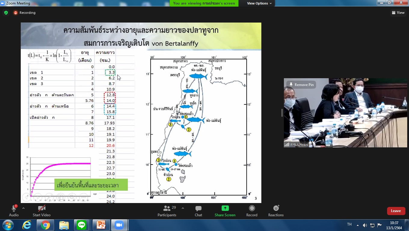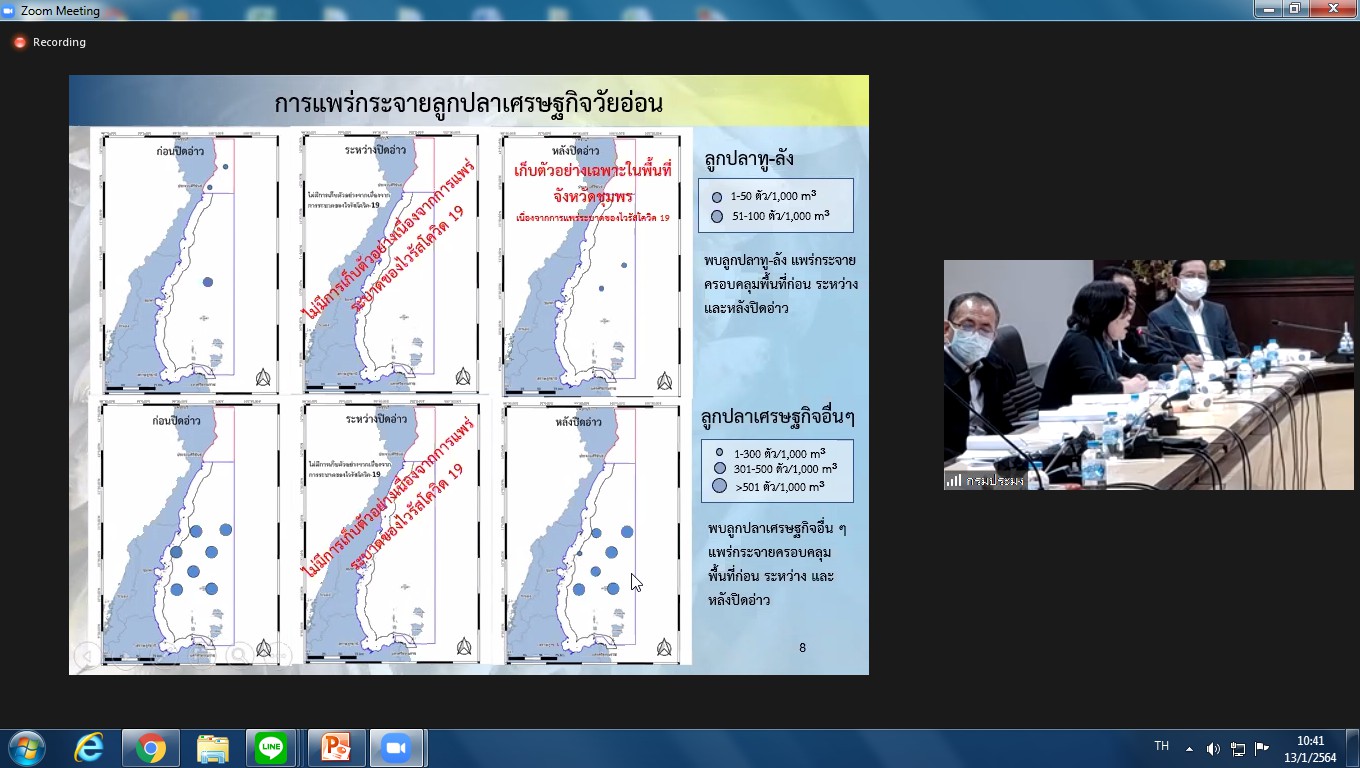 นักวิชาการประมง ศูนย์วิจัยและพัฒนาประมงทะเลสมุทรปราการ เข้าร่วมประชุมคณะกรรมการเพื่อดำเนินงานตามมาตรการบริหารจัดการทรัพยากรสัตว์น้ำมีไข่ วางไข่ เลี้ยงตัวอ่อน ประจำปี 2564 ผ่านโปรแกรม ZOOM