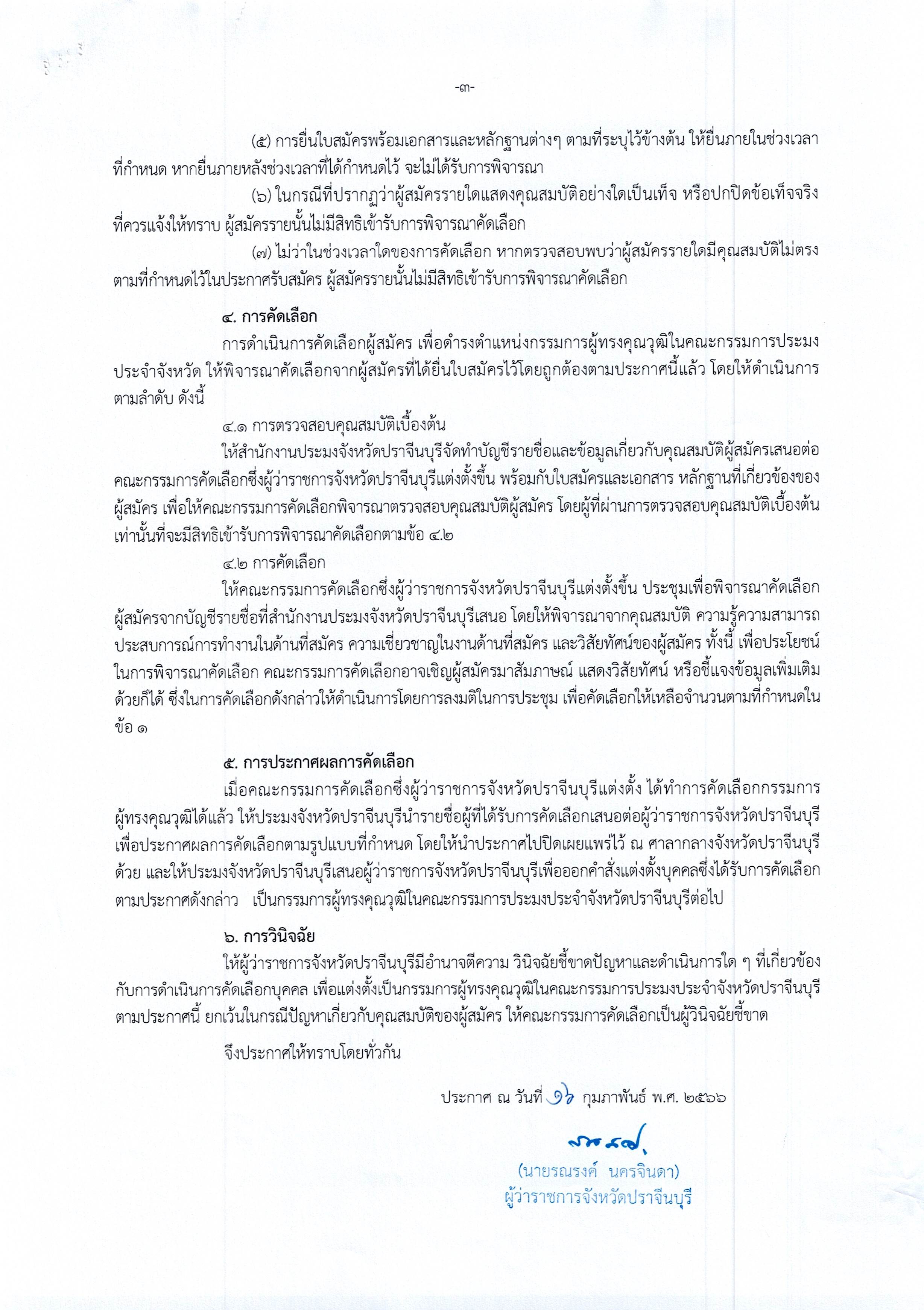 ประกาศจังหวัดปราจีนบุรี เรื่อง การรับสมัครบุคคลเข้ารับการคัดเลือกเพื่อแต่งตั้งเป็นกรรมการผู้ทรงคุณวุฒิในคณะกรรมการประมงประจำจังหวัดปราจีนบุรี