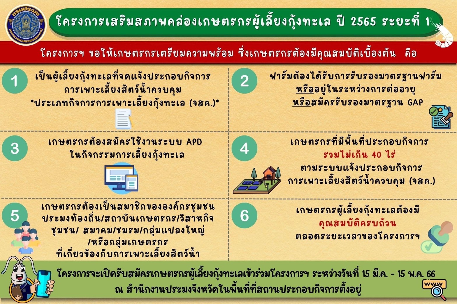 ประชาสัมพันธ์ เปิดรับสมัครโครงการเสริมสภาพคล่องเกษตรกรผู้เลี้ยงกุ้งทะเล