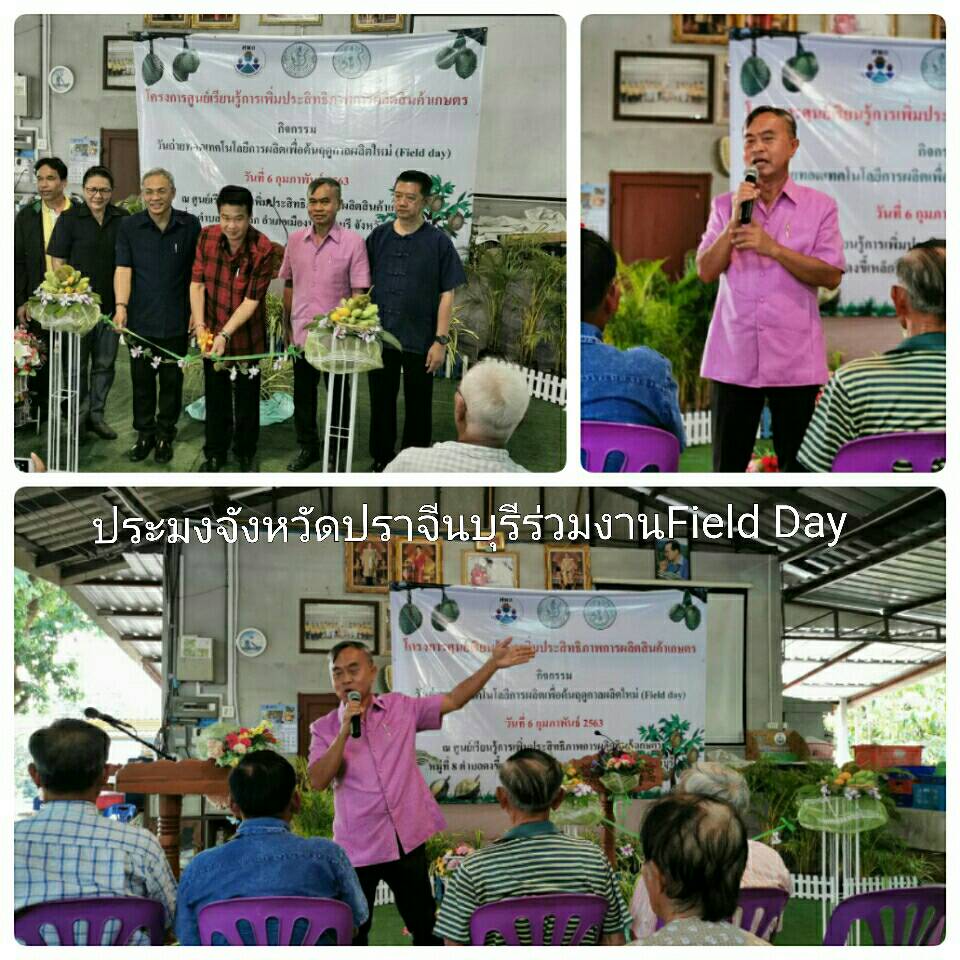 วันที่ 6 มกราคม 2563 เวลา 13.00 น.นายธีรพงศ์ ไกรนรา ประมงจังหวัดปราจีนบุรี พร้อมด้วยเจ้าหน้าที่กลุ่มพัฒนาและส่งเสริมอาชีพการประมง ร่วมจัดงานวันถ่ายทอดเทคโนโลยี Field Day และบริการการเกษตร เพื่อเริ่มต้นฤดูกาลผลิตใหม่ปี 2563 ณ ศูนย์เรียนรู้การเพิ่มประสิทธิภาพสินค้าเกษตรอำเภอเมืองปราจีนบุรี จังหวัดปราจีนบุรี โดยมีนายนรเสฎฐ์ ศรีตะพัสโส นายอำเภอปราจีนบุรีเป็นประธานในพิธี มีหน่วยงานในสังกัดกระทรวงเกษตรและสหกรณ์,พร้อมเอกชนเข้าร่วมจัดกิจกรรม มีเกษตรกรเข้าร่วมงานประมาณ100 คน