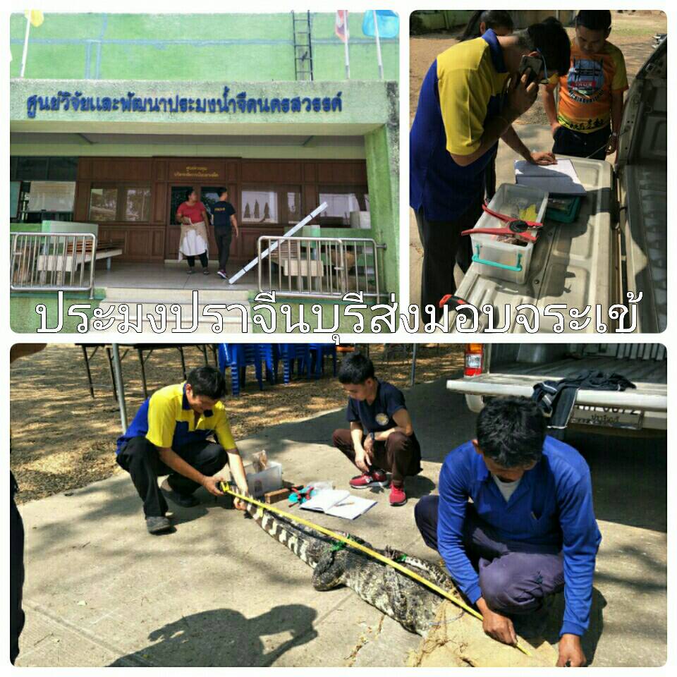 ประมงจังหวัดปราจีนบุรีส่งมอบจระเข้น้ำจืดให้ศูนย์วิจัยและพัฒนาประมงน้ำจืด เขต2(นครสวรรค์)  วันพฤหัสบดีที่ 6 กุมภาพันธ์ 2563 นายธีรพงศ์ ไกรนรา ประมงจังหวัดปราจีนบุรี มอบหมายให้ นางสาวทิพาวรรณ แสนอ่อน เจ้าพนักงานประมงปฎิบัติงาน และเจ้าหน้าที่กลุ่มบริหารจัดการด้านการประมง นำจระเข้น้ำจืด จำนวน1ตัว ที่จับได้จากแหล่งน้ำสาธารณะ หมู่ที่ 7 ตำบลกบินทร์ อำเภอกบินทร์บุรี จังหวัดปราจีนบุรี เมื่ออังคารที่ 4 กุมภาพันธ์ 2563 ส่งมอบให้กับทางศูนย์วิจัยและพัฒนาประมงน้ำจืด เขต2 (นครสวรรค์) ตำบลแควใหญ่ อำเภอเมืองนครสวรรค์ จังหวัดนครสวรรค์ ในการกำกับดูแล เก็บรักษา เพื่อใช้ประโยชน์ทางวิชาการ ให้เป็นไปตามกฎระเบียบของกรมประม