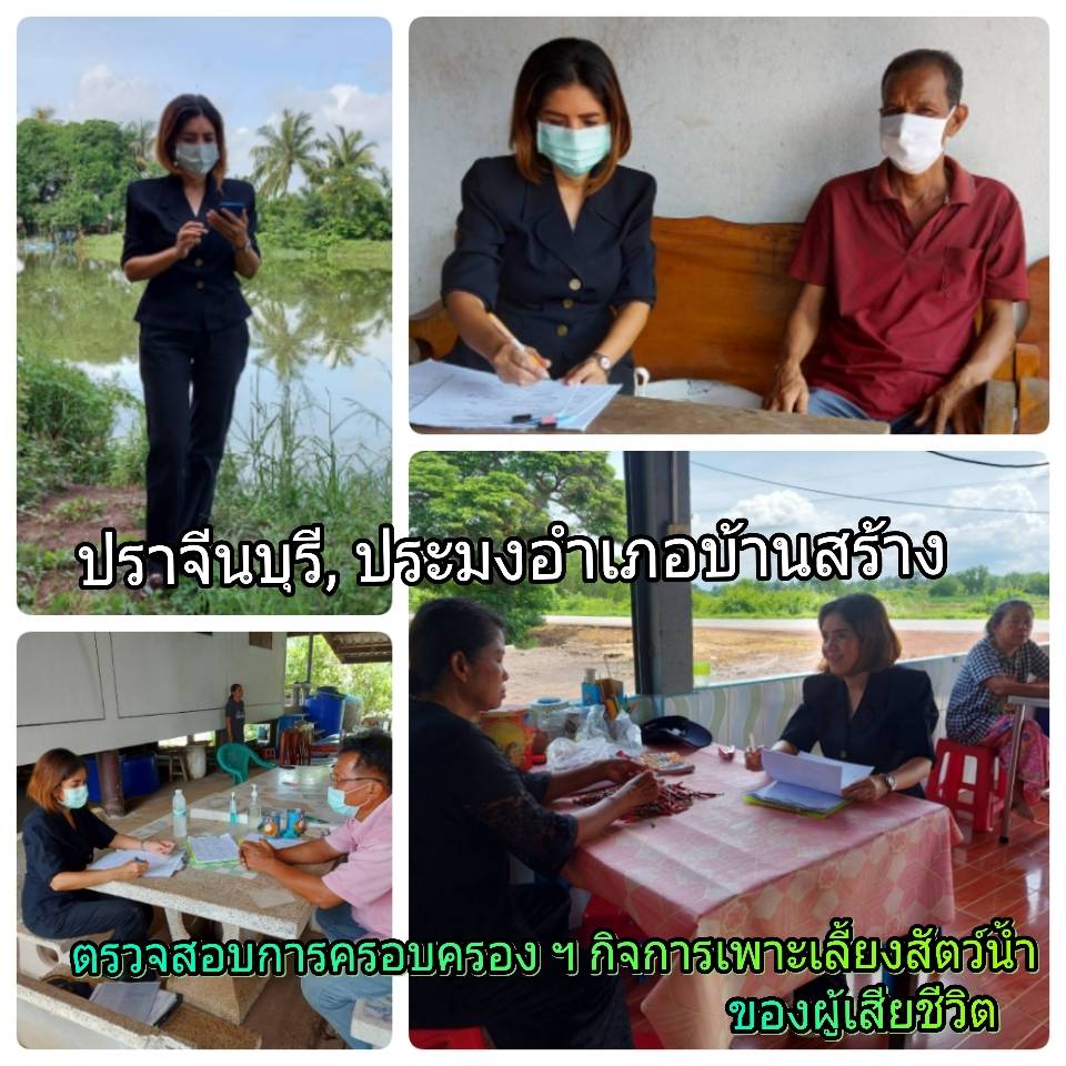 นายธีรพงศ์ ไกรนรา ประมงจังหวัดปราจีนบุรี มอบหมายให้นางกัตติกา ตูวิเชียร ประมงอำเภอบ้านสร้าง พร้อมด้วยผู้ใหญ่บ้าน  หมู่ที่ 13 ตำบลบางยาง,หมู่ที่ 3 และ 4  ตำบลบ้านสร้าง, หมู่ที่  8 ตำบลบางเตย,หมู่ 1 และ 4 ตำบลบางแตน ร่วมตรวจสอบการครอบครองและการใช้ประโยชน์ในกิจการเพาะเลี้ยงสัตว์น้ำ หรือการทำการประมง ของเกษตรกรผู้เสียชีวิต รวมทั้งสิ้นจำนวน 6 ราย