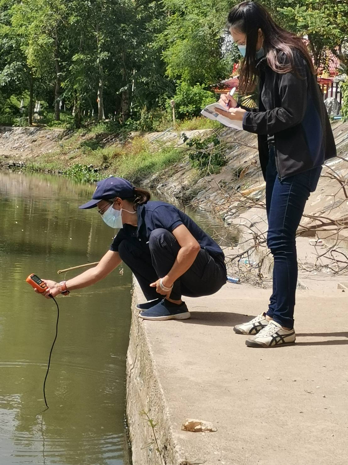 จุดที่ 2 บริเวณท่าน้ำวัดช้าง อำเภอบ้านนา ค่าความเป็นกรดหรือด่างของสารละลายในน้ำ (pH) = 6.07 ค่าออกซิเจนที่ละลายน้ำ (DO) = 1.04 มิลลิกรัม/ลิตร