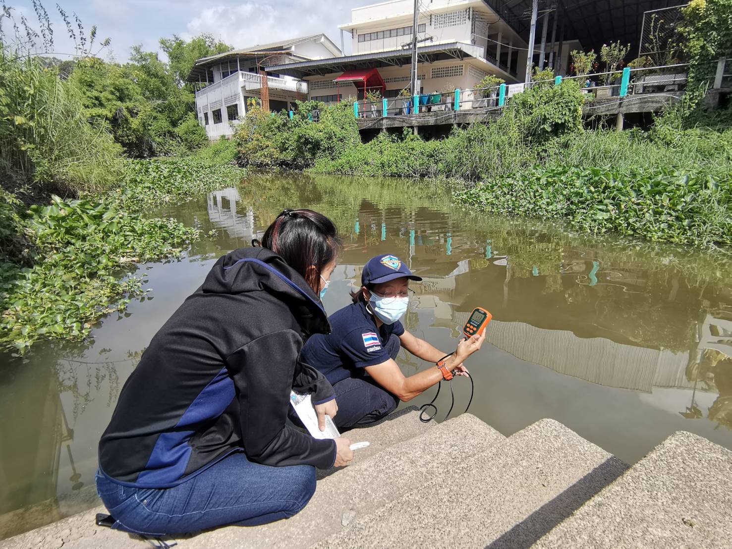 นางสาวศิธรา โชติพิทักษ์ ประมงอำเภอบ้านนา พร้อมด้วยนางสาวสิริภา ศรธนู ปลัดอำเภอบ้านนา ออกตรวจวัดคุณภาพน้ำคลองบ้านนา