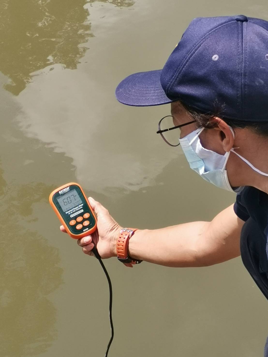จุดที่ 1 บริเวณท่าน้ำสนามแบดมินตันวงเวียนบ้านนา ค่าความเป็นกรดหรือด่างของสารละลายในน้ำ (pH) = 6.06 ค่าออกซิเจนที่ละลายน้ำ (DO) = 1.14 มิลลิกรัม/ลิตร