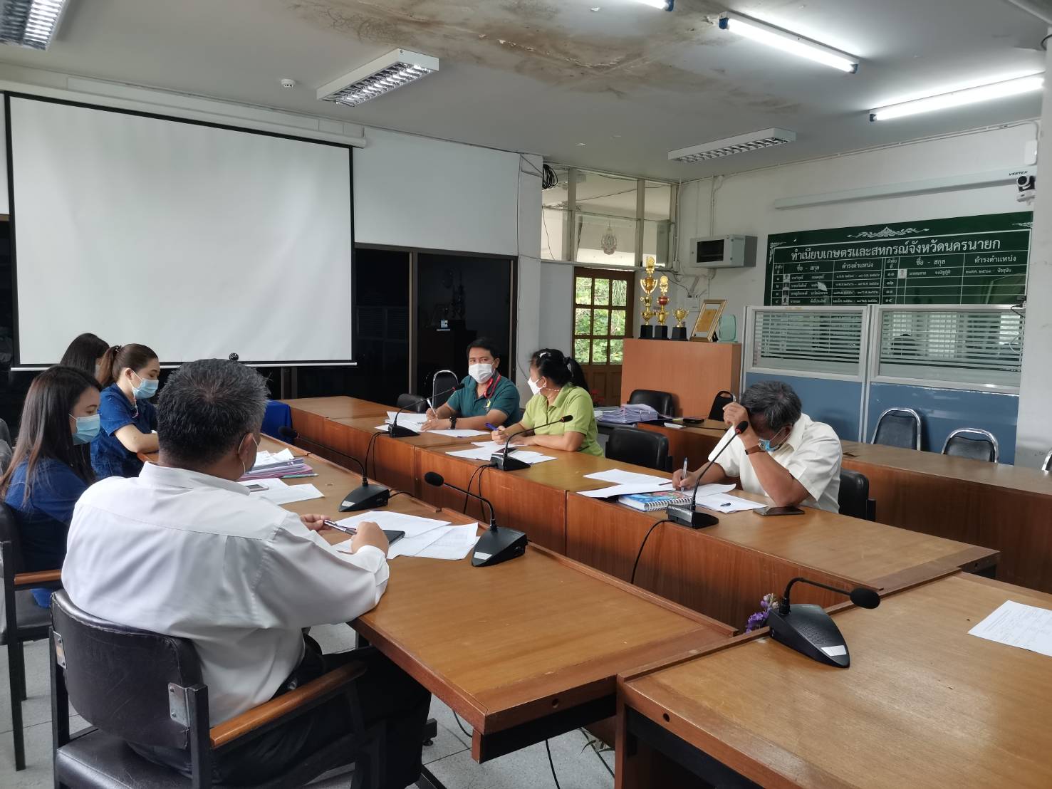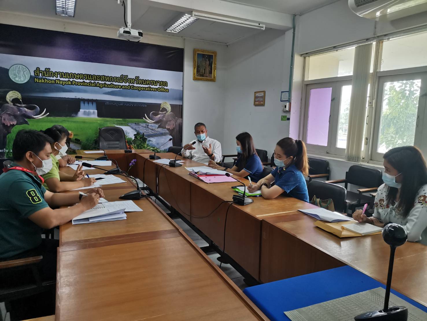 นายบุญส่ง ศิริมา ประมงจังหวัดนครนายก พร้อมด้วย นายอนิวรรตน์ สมชีวิตา นักวิชาการประมงปฏิบัติการ ร่วมประชุมหารือการขับเคลื่อนโครงการส่งเสริมการปลูกผักปลอดสารพิษบนกระเบื้องและเกษตรผสมผสาน ภายใต้งบเงินกู้เพื่อแก้ไขปัญหาเยียวยาและฟื้นฟูเศรษฐกิจและสังคมที่ได้รับผลกระทบจากการระบาดของโรคติดต่อเชื้อไวรัสโคโรน่า 2019 โดยมี นายสมชาย จงบัญญัติ เกษตรและสหกรณ์จังหวัดนครนายก เป็นประธาน และหัวหน้าส่วนราชการ และเจ้าหน้าที่หน่วยงานสังกัดกระทรวงเกษตรและสหกรณ์จังหวัดนครนายก เข้าร่วมประชุมพร้อมเพียงกัน ซึ่งที่ประชุมได้รับทราบผลการดำเนินงานที่ผ่านมา และร่วมพิจารณาปรับแผนการอบรมเกษตรกรและแผนการสนับสนุนปัจจัยการผลิต ให้เหมาะสมและบรรลุตามวัตถุประสงค์ของโครงการฯ ภายใต้สถานการณ์การระบาดของโรคติดเชื้อไวรัสโคโรน่า 2019 ณ ห้องประชุม สำนักงานเกษตรและสหกรณ์จังหวัดนครนายก