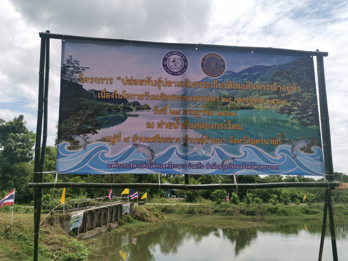 วันอังคารที่ 27 กรกฎาคม 2564 นางสาวศิธรา โชติพิทักษ์ ประมงอำเภอบ้านนา เข้าจัดเตรียมสถานที่ เพื่อเตรียมจัดกิจกรรมโครงการปล่อยพันธุ์สัตว์น้ำ เนื่องในวันเฉลิมพระชนมพรรษาพระบาทสมเด็จพระปรเมนทรรามาธิบดีศรีสินทรมหาวชิราลงกรณ พระวชิรเกล้าเจ้าอยู่หัว โดยกำหนดปล่อยปลา ในวันพฤหัสบดีที่ 29 กรกฎาคม 2564 เวลา 08.00 น. เป็นต้นไป ณ แหล่งน้ำสาธารณะฝายน้ำล้นคลองกระโดน หมู่ 6 ตำบลศรีกะอาง อำเภอบ้านนา พร้อมเข้าตรวจสอบคุมเข้มคุณภาพน้ำในแหล่งน้ำสาธารณะ ให้มีความพร้อมสำหรับการปล่อยพันธุ์สัตว์น้ำ ณ ฝายน้ำล้นคลองบ้านนา วัดเนินสะอาด อำเภอบ้านนา เพื่อนำพันธุ์สัตว์น้ำไปปล่อยตามแหล่งน้ำต่างๆ ให้เกิดความหลากหลายและความอุดมสมบูรณ์ทั่วถึง ซึ่งคุณภาพน้ำที่เหมาะสมจะช่วยเพิ่มอัตรารอดชีวิตของลูกปลา ทั้งนี้ได้ฝากให้ผู้นำชุมชน ผู้นำท้องถิ่น และชาวบ้านในพื้นที่ช่วยกันดูแลแหล่งน้ำให้มีความอุดมสมบูรณ์ต่อไป