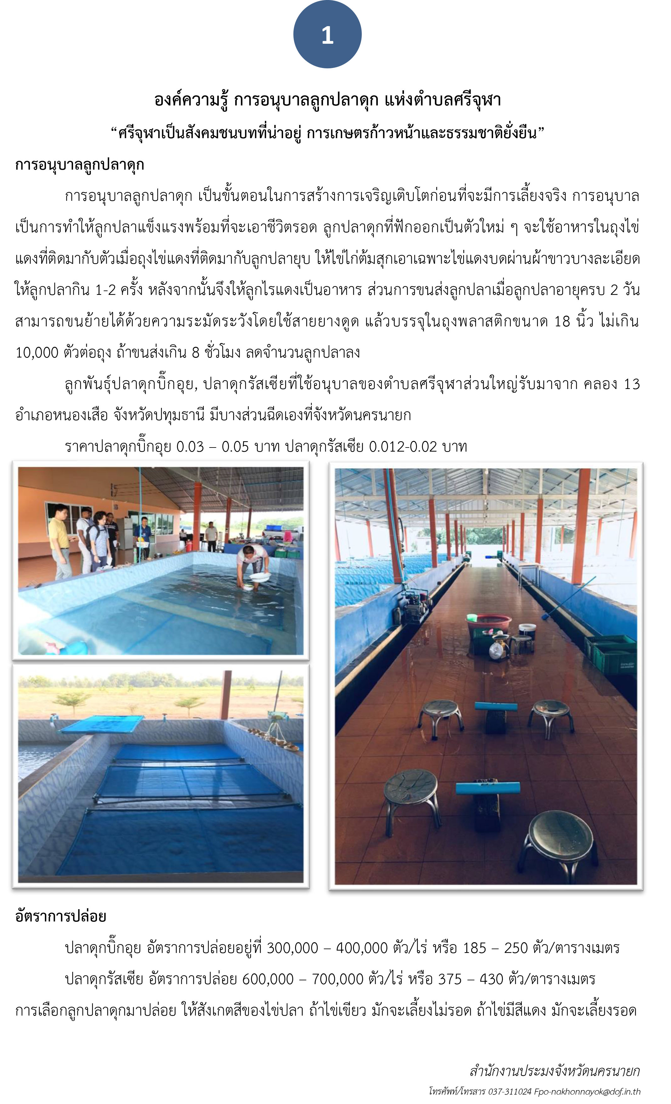 องค์ความรู้ การอนุบาลลูกปลาดุก แห่งตำบลศรีจุฬา