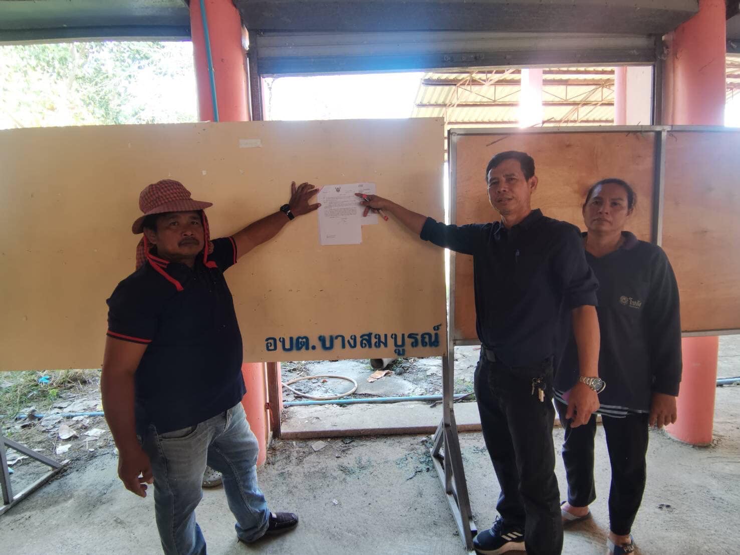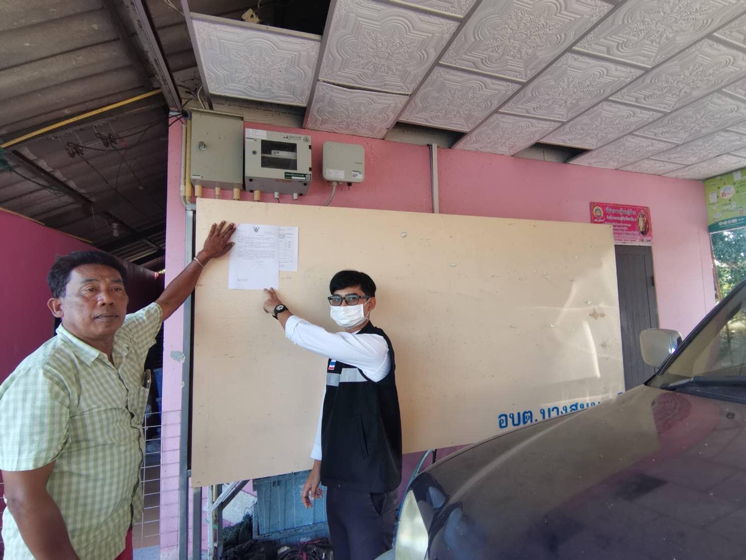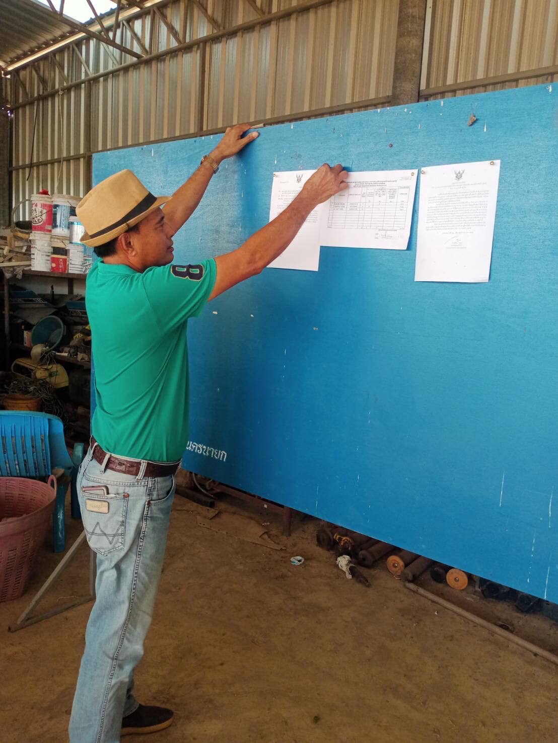ประมงอำเภอองครักษ์ ติดประกาศ ประชาสัมพันธ์ ประมาณการค่าชดเชย ตามแบบ กษ 02 ระดับหมู่บ้าน