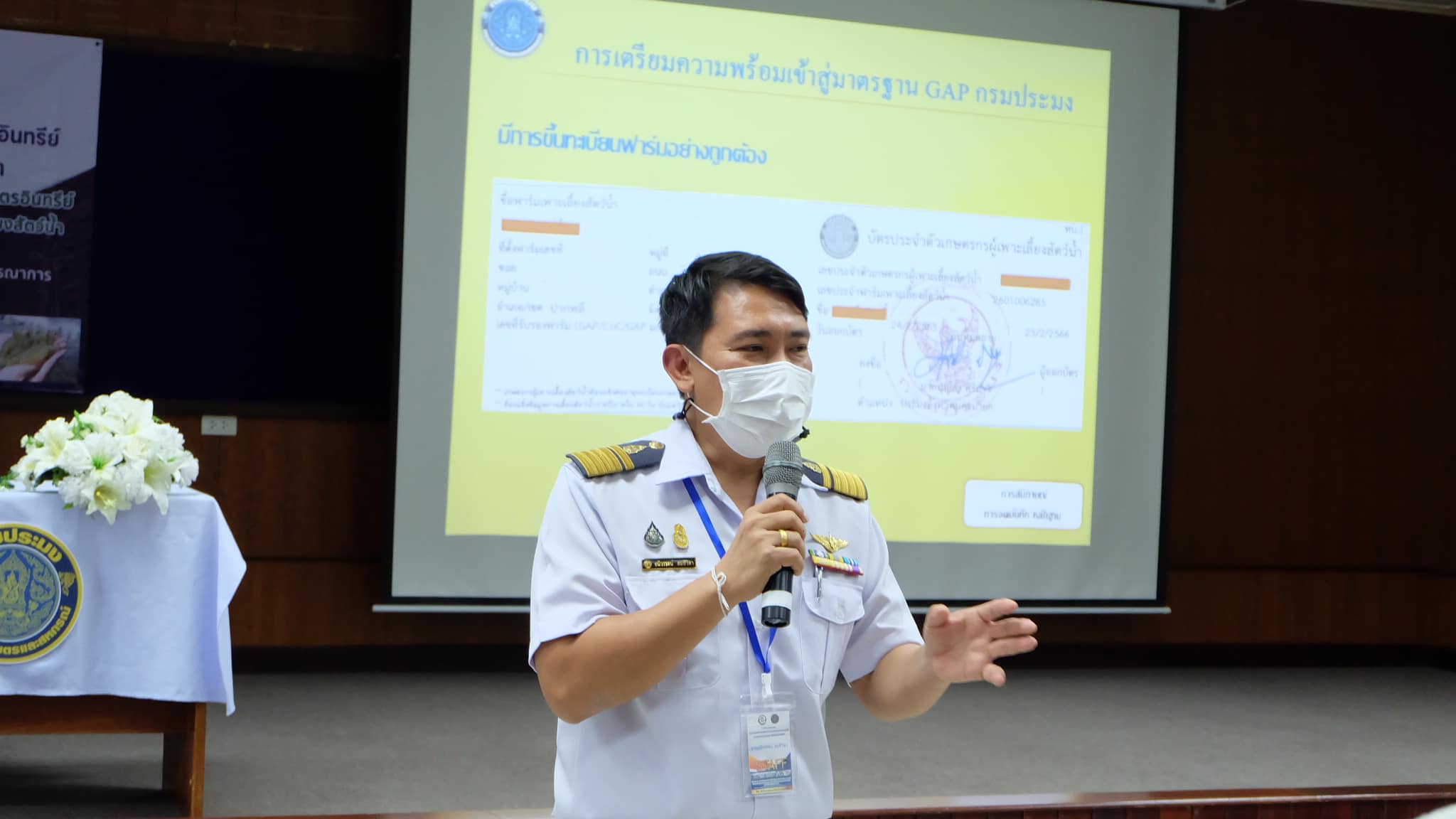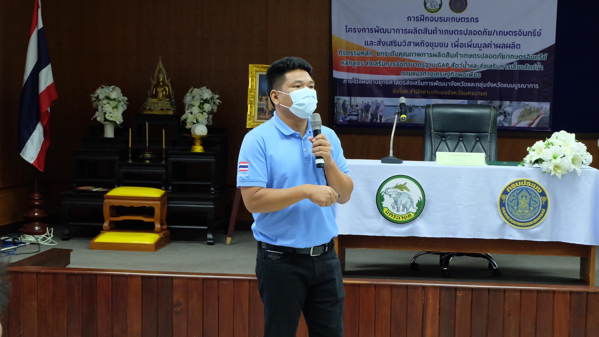 สำนักงานประมงจังหวัดนครนายก โดยนางสาวรัชนีบูลย์ ทิพย์เนตร เจ้าพนักงานประมงอาวุโส รักษาราชการแทน ประมงจังหวัดนครนายก พร้อมด้วยเจ้าหน้าที่สำนักงานประมงจังหวัดนครนายก จัดฝึกอบรมเกษตรกรผู้เพาะเลี้ยงสัตว์น้ำพร้อมมอบปัจจัยการผลิตให้แก่เกษตร จำนวน 45 ราย ตาม “โครงการพัฒนาการผลิตสินค้าเกษตรปลอดภัย/เกษตรอินทรีย์และส่งเสริมวิสาหกิจชุมชน เพื่อเพิ่มมูลค่าการผลิต” ภายใต้แผนงานยุทธศาสตร์ส่งเสริมการพัฒนาจังหวัดและกลุ่มจังหวัดแบบบูรณาการ ณ ห้องประชุมสถาบันเทคโนโลยีนิวเคลียร์แห่งชาติ (องค์การมหาชน) ตำบลทรายมูล อำเภอองครักษ์ จังหวัดนครนายก โดยมีรองศาสตราจารย์ ดร. ธวัชชัย อ่อนจันทร์ ผู้อำนวยการสถาบันเทคโนโลยีนิวเคลียร์แห่งชาติ (องค์การมหาชน) ให้การต้อนรับ นายบัญชา เชาวรินทร์ ผู้ว่าราชการจังหวัดนครนายก ประธานในพิธีเปิดการฝึกอบรม