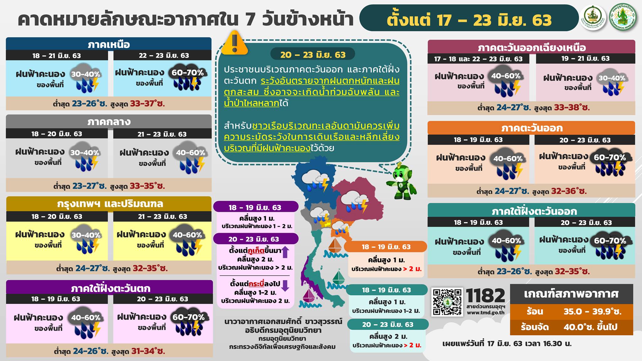 HOT พยากรณ์อากาศเพื่อการเกษตร  7 วันข้างหน้า ตั้งแต่วันที่ 17 - 23 มิถุนายน 2563..คลิก